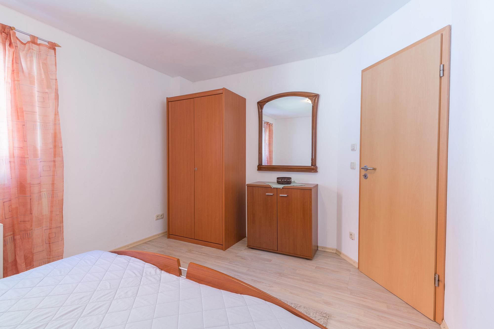 Im Schlafzimmer steht Ihnen ein Doppelbett (2x90x200 cm). Ein großer Kleiderschrank dient zur idealen Unterbringung Ihrer Reisesachen. Zur Nachtruhe können Sie den Raum mit den vorhandenen Vorhängen abdunkeln. In dieser Nichtraucherwohnung sind keine Haustiere erlaubt. Vom Ferienhof Karl's Ruhe sind es etwa 2400 Meter bis zum nächsten Strand.