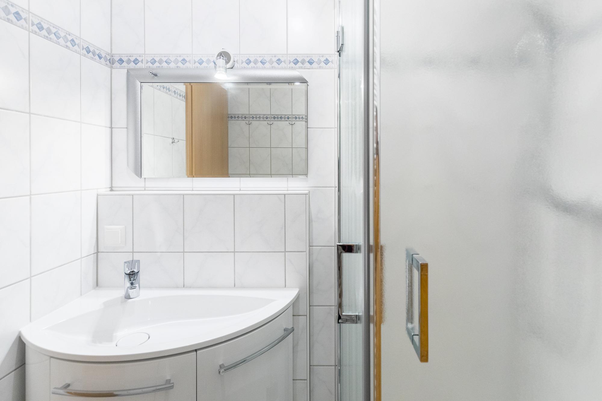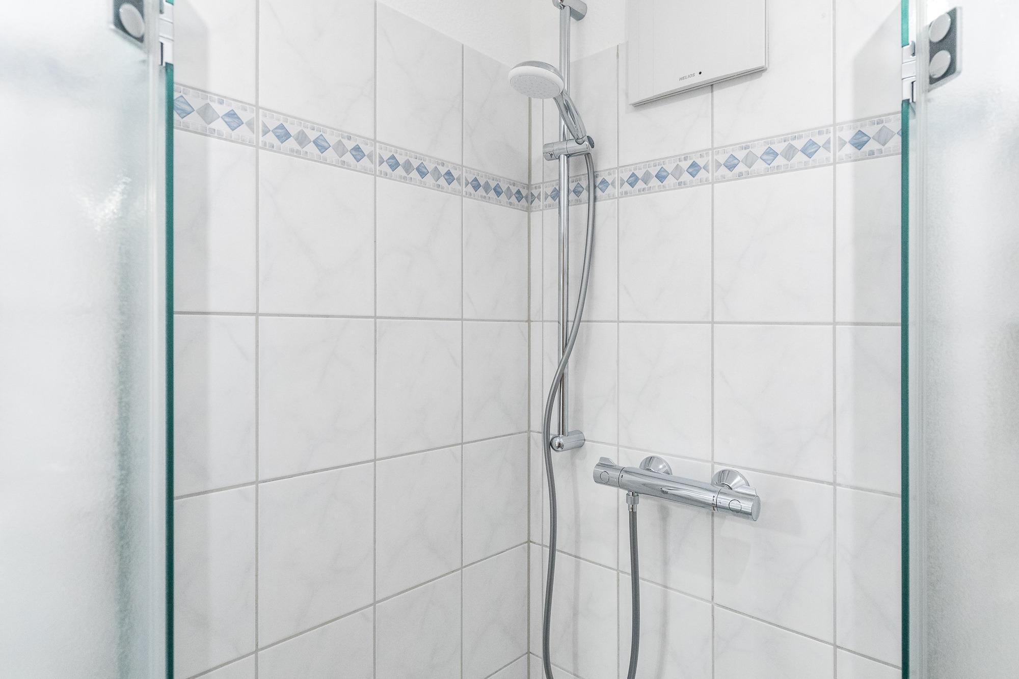 Ein modern eingerichtetes Duschbad mit WC, Handtuchheizung und Fußbodenheizung komplettiert diese zentrale Nichtraucher-Ferienunterkunft.