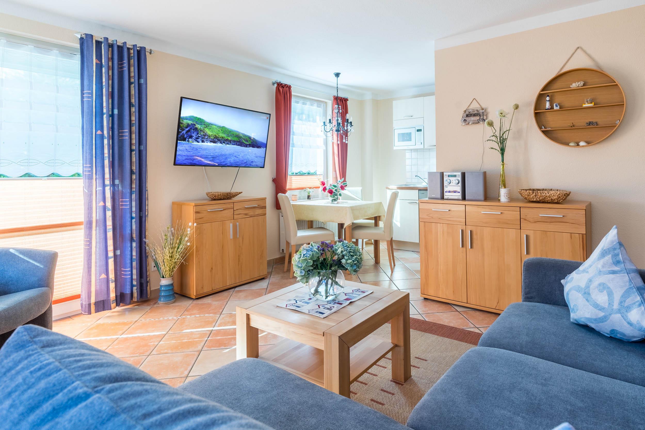 Dieses schöne 2-Zimmer-Ferienappartement im EG lädt auf rund 49qm Wohnfläche zum Ostseeurlaub zu Zweit ein.