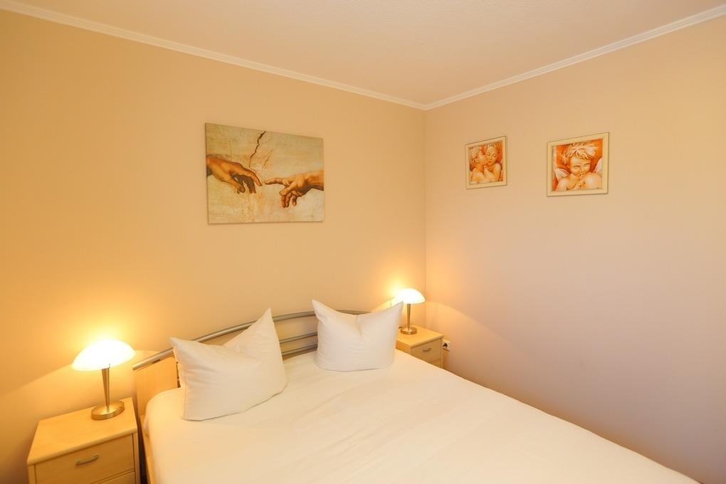 Weiterhin bietet das Schlafzimmer ein Doppelbett (160x200cm, Höhe 52cm) und einen großen Kleiderschrank. Auch hier befindet sich ein Fernseher.