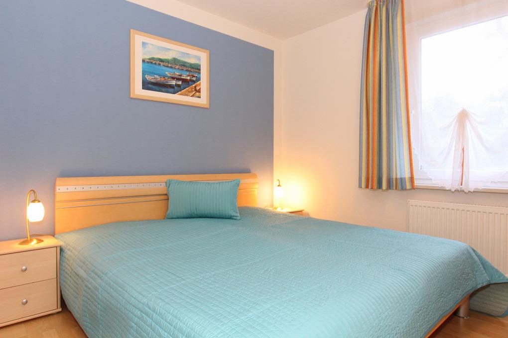 Zum Nächtigen stehen 2 Schlafzimmer zur Verfügung: Im größeren Schlafzimmer befindet sich ein Doppelbett (180x200) und ein Kleiderschrank und im kleineren Schlafzimmer ein Bett, das man - Besonderheit: auf gleicher Höhe (! - siehe Bilder) - auf 140x200 ausziehen kann.