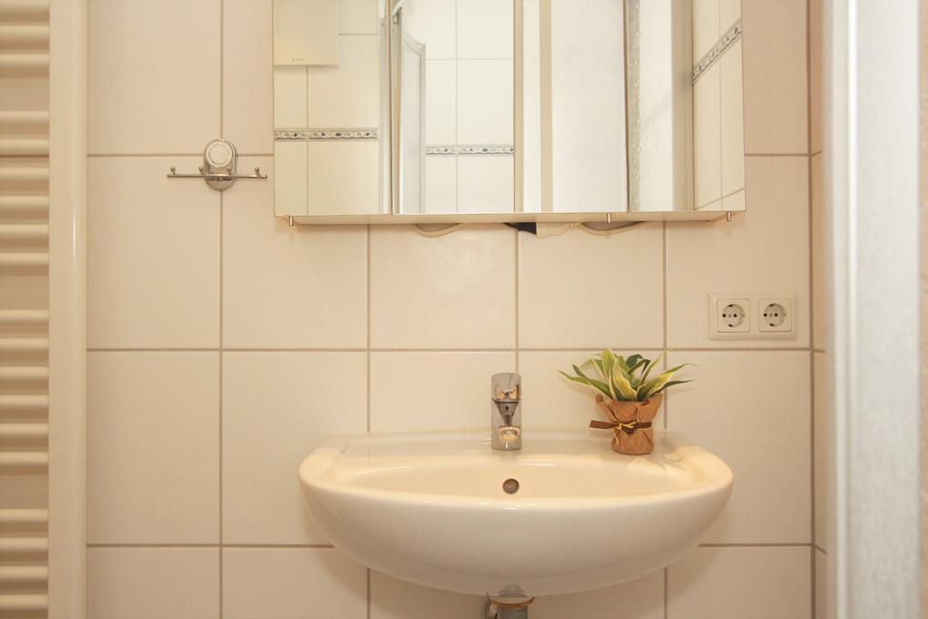 Selbstverständlich gibt es hier auch ein modernes Duschbad mit WC mit Fußbodenheizung. Eine Handtuchheizung sorgt hier auf Wunsch für mollig warme Frotteewäsche.