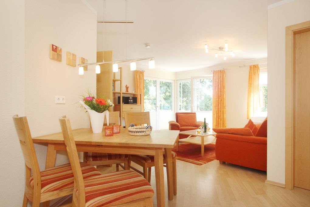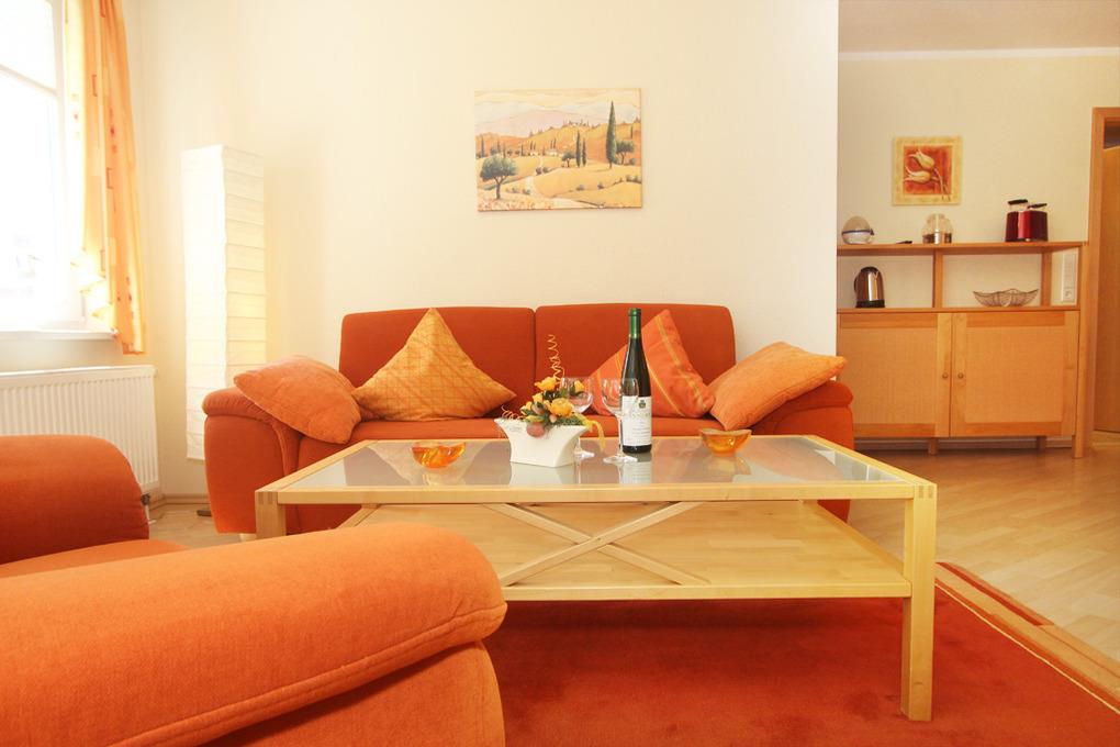 Die Nichtraucherunterkunft verfügt über in einen hellen und gemütlich möblierten Wohnbereich mit Zugang zum möblierten Eckbalkon in Süd-Ost-Ausrichtung. SAT-TV, DVD-Player, Musikanlage sowie diverse Gesellschaftsspiele und Bücher sorgen hier für Ihre Unterhaltung.