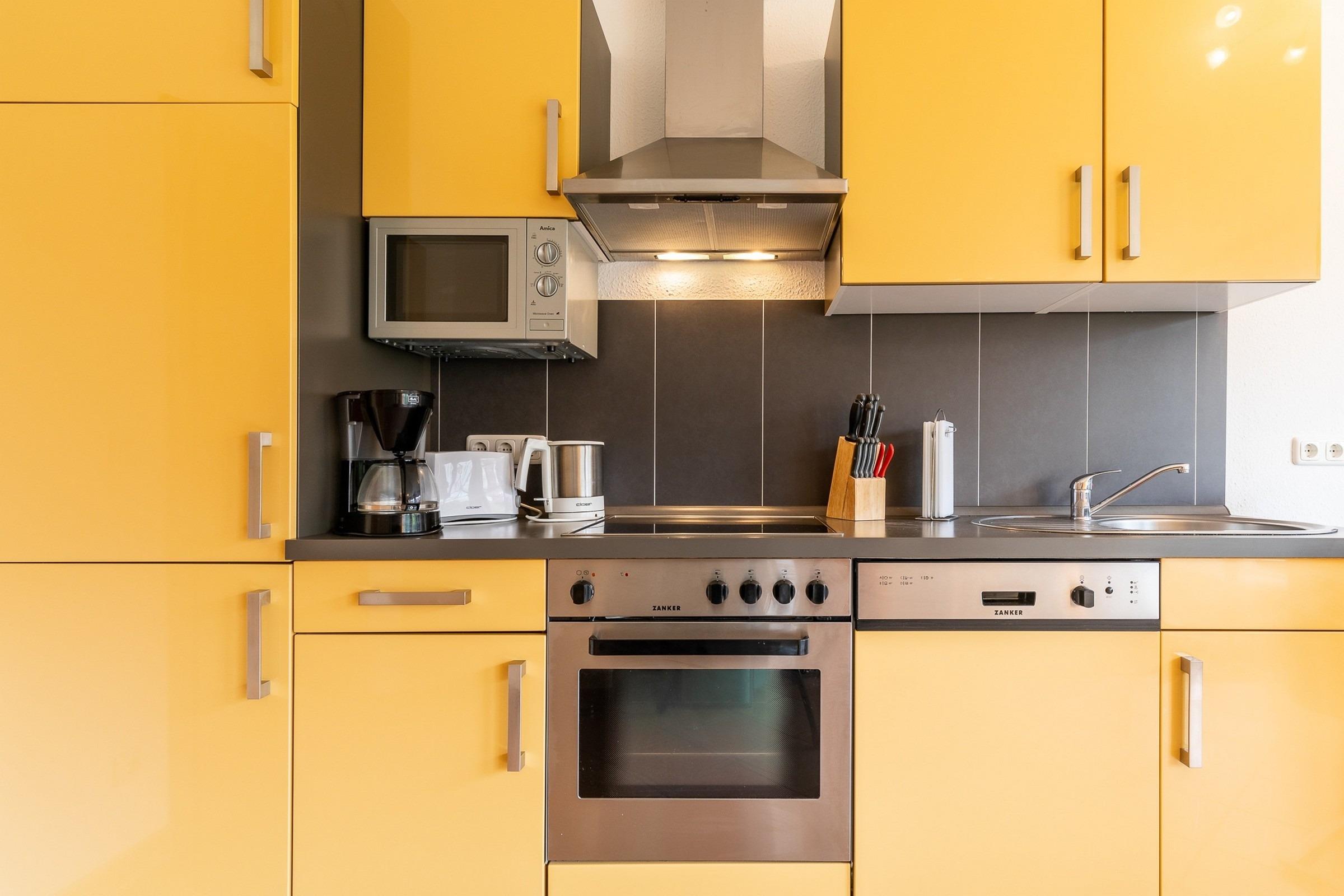 In der offenen Wohnküche steht Ihnen ein Geschirrspüler, Mikrowelle und ein Ceran-Feld mit Backofen, neben anderen Küchengeräten, zur Verfügung. Die separate Essecke ist wie geschaffen für lange gemütliche Mahlzeiten.
