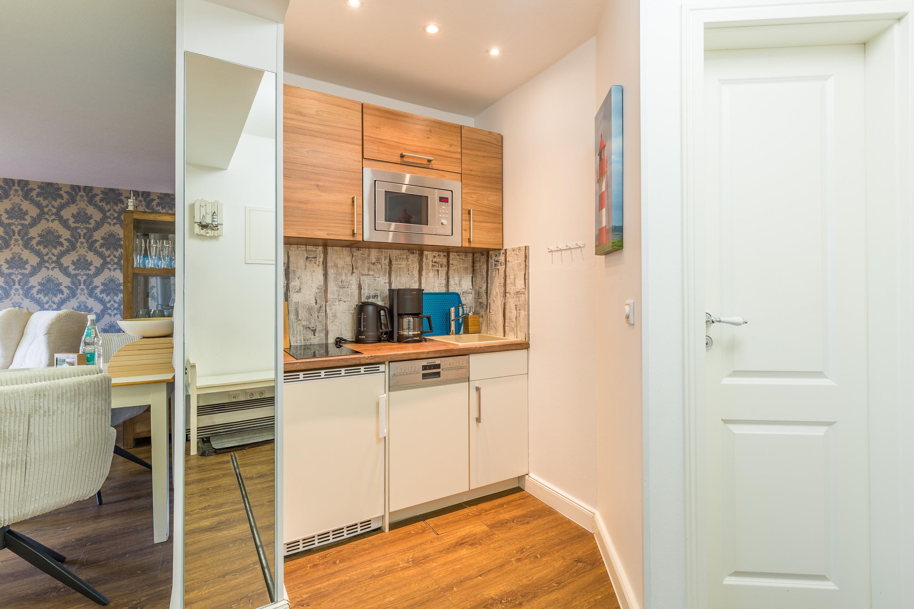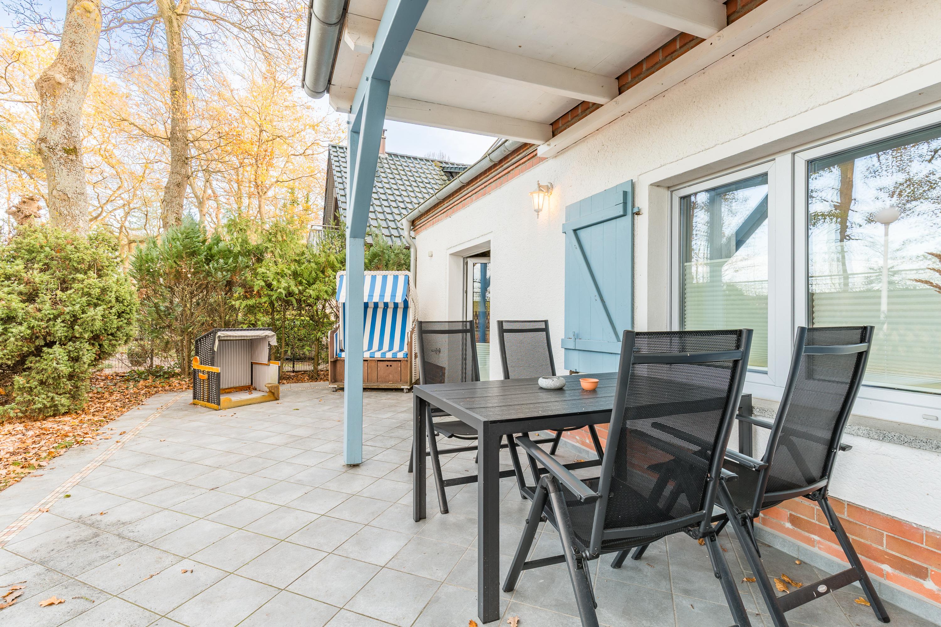Diese gemütlich ausgestattete Wohnung im Erdgeschoss überzeugt durch das offene Raumkonzept mit Einbauküche, Essbereich und Wohnbereich zur Terrasse mit Strandkorb und Ostseefeeling. Im Wohnzimmer erfreut ein 55‘‘ Smart TV, der im Schlafzimmer ist eine Nummer kleiner. Ihr Haustier ist willkommen, eine Fütterstation wartet in der zugängigen Besenkammer. Strandurlaub. Komfort. Natur. Ruhe. Ostsee.