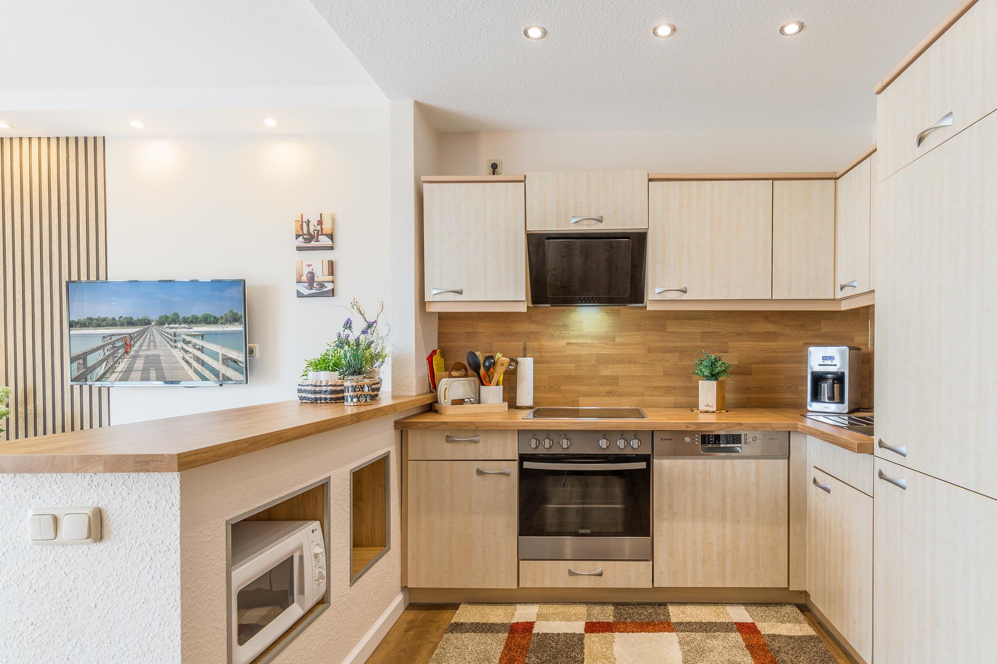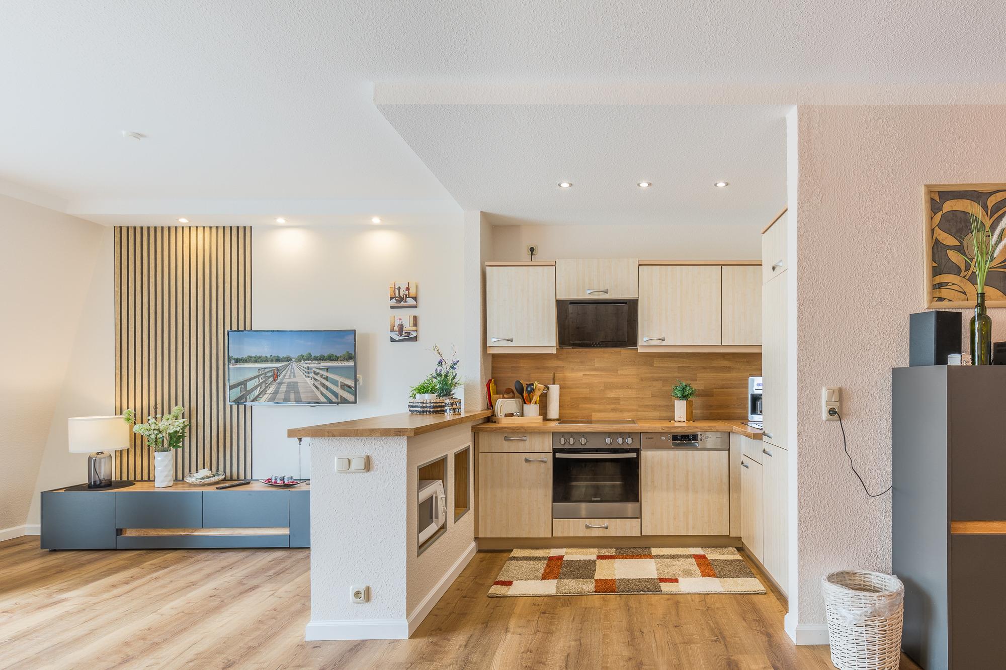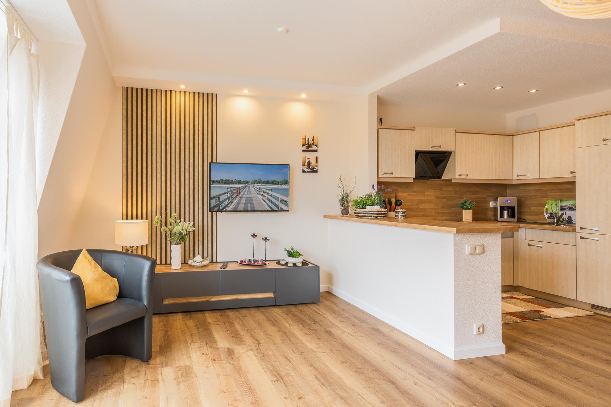 Diese geräumige 2-Raum Wohnung im 2. Obergeschoss befindet sich im Zentrum von Boltenhagen und ist nur etwa 50 m vom Strand entfernt. Sie bietet mit einem Schlafzimmer mit Boxspringbett (durchgehender Topper Größe180x200cm) und einer bequemen Schlafcouch Platz für bis zu 3 Personen.