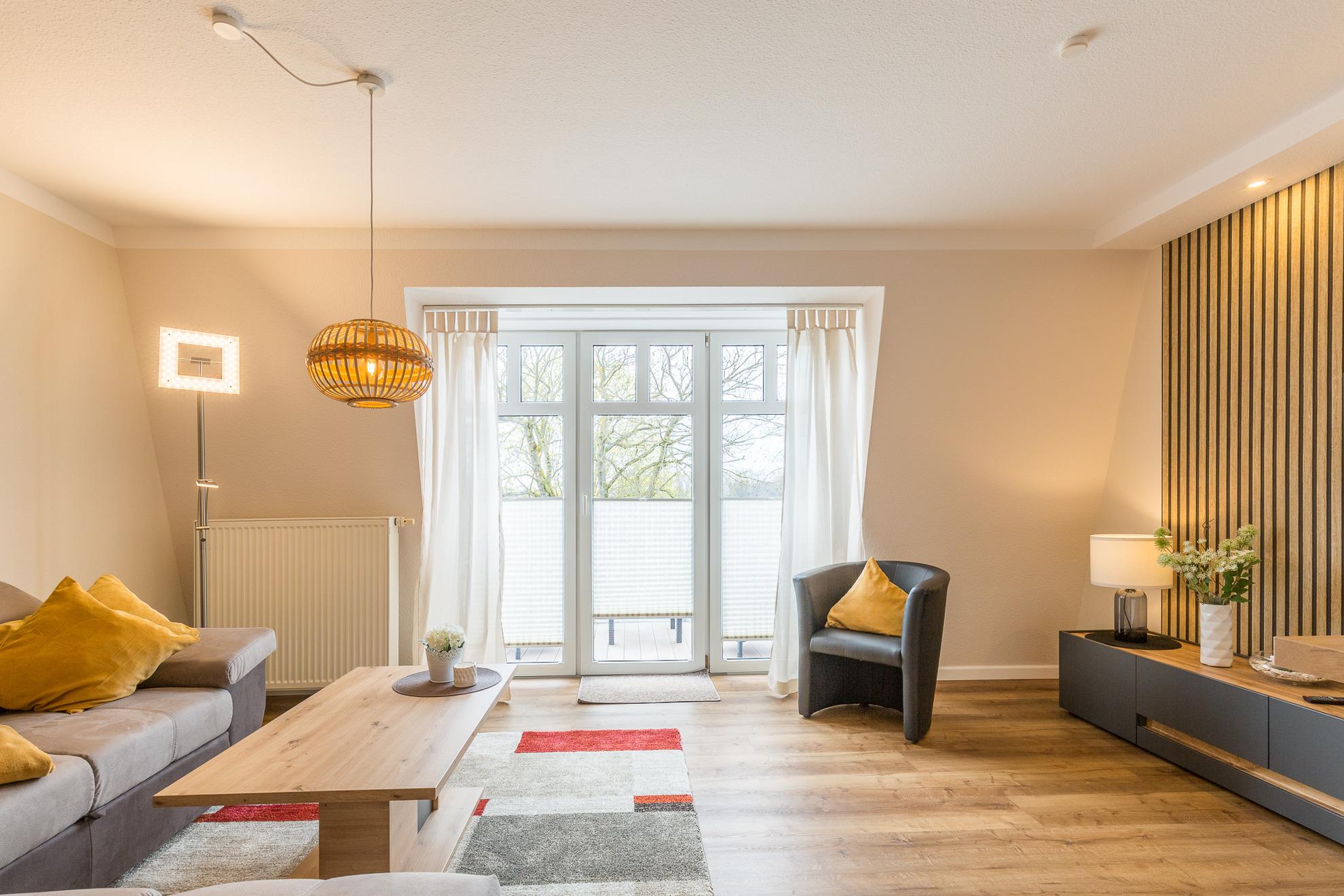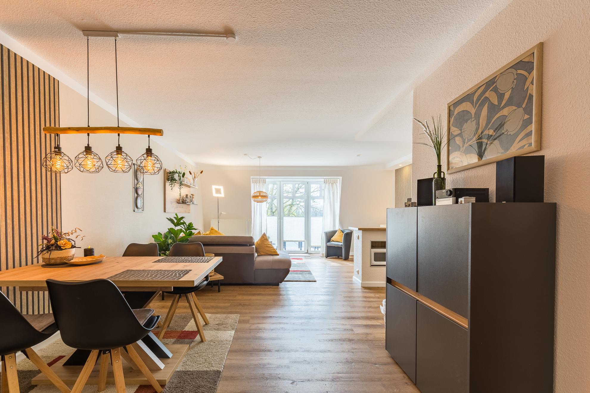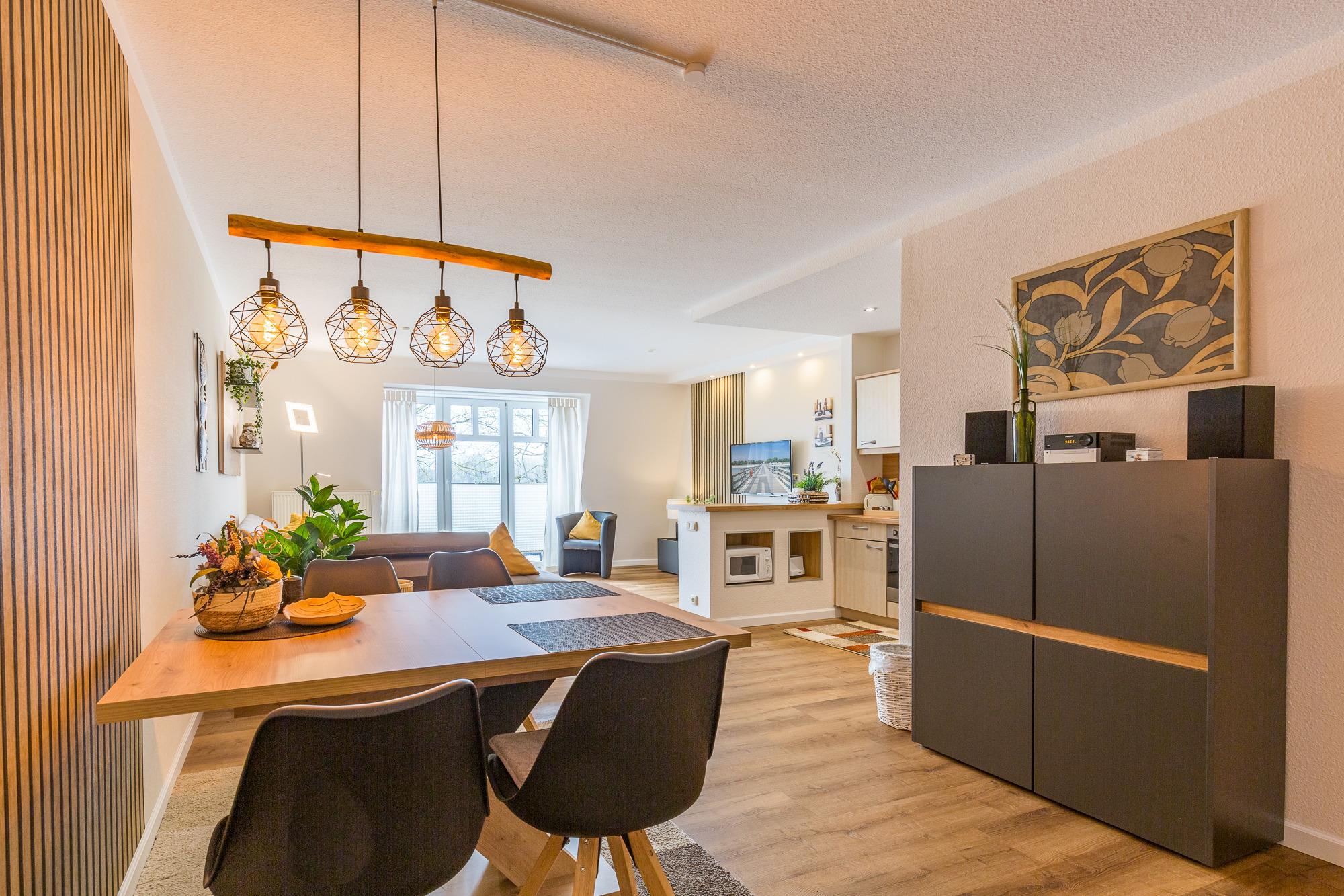 Diese geräumige 2-Raum Wohnung im 2. Obergeschoss befindet sich im Zentrum von Boltenhagen und ist nur etwa 50 m vom Strand entfernt. Sie bietet mit einem Schlafzimmer mit Boxspringbett (durchgehender Topper Größe180x200cm) und einer bequemen Schlafcouch Platz für bis zu 3 Personen.