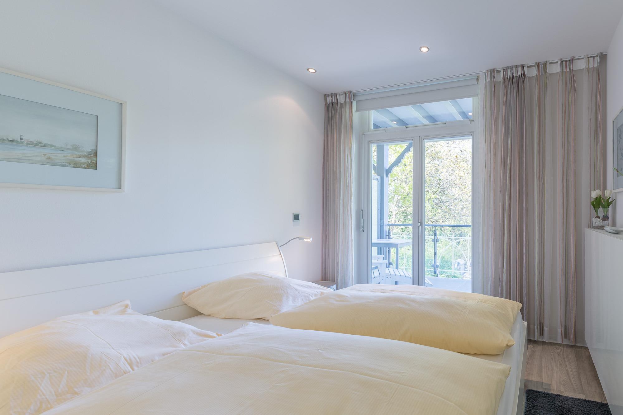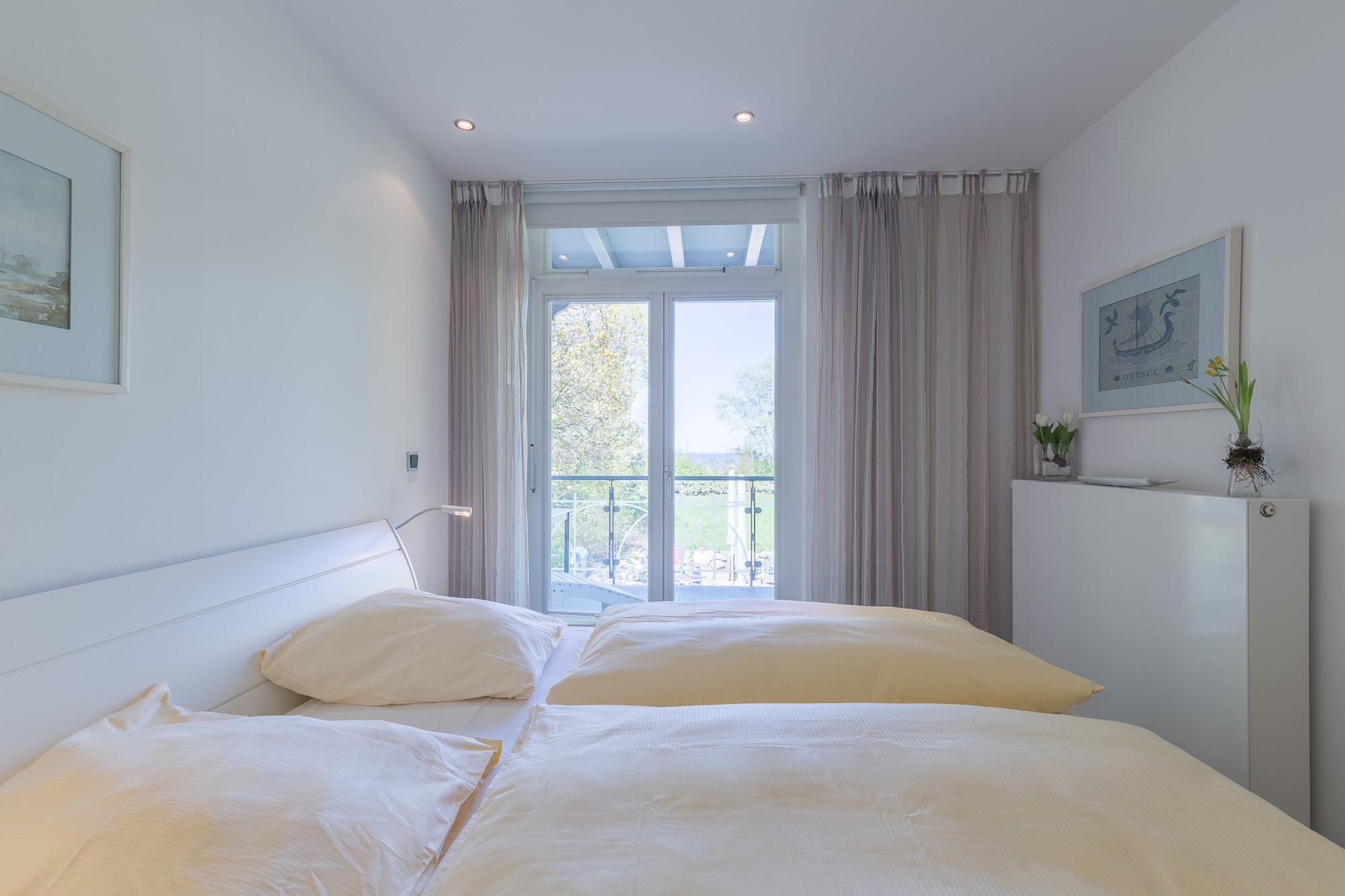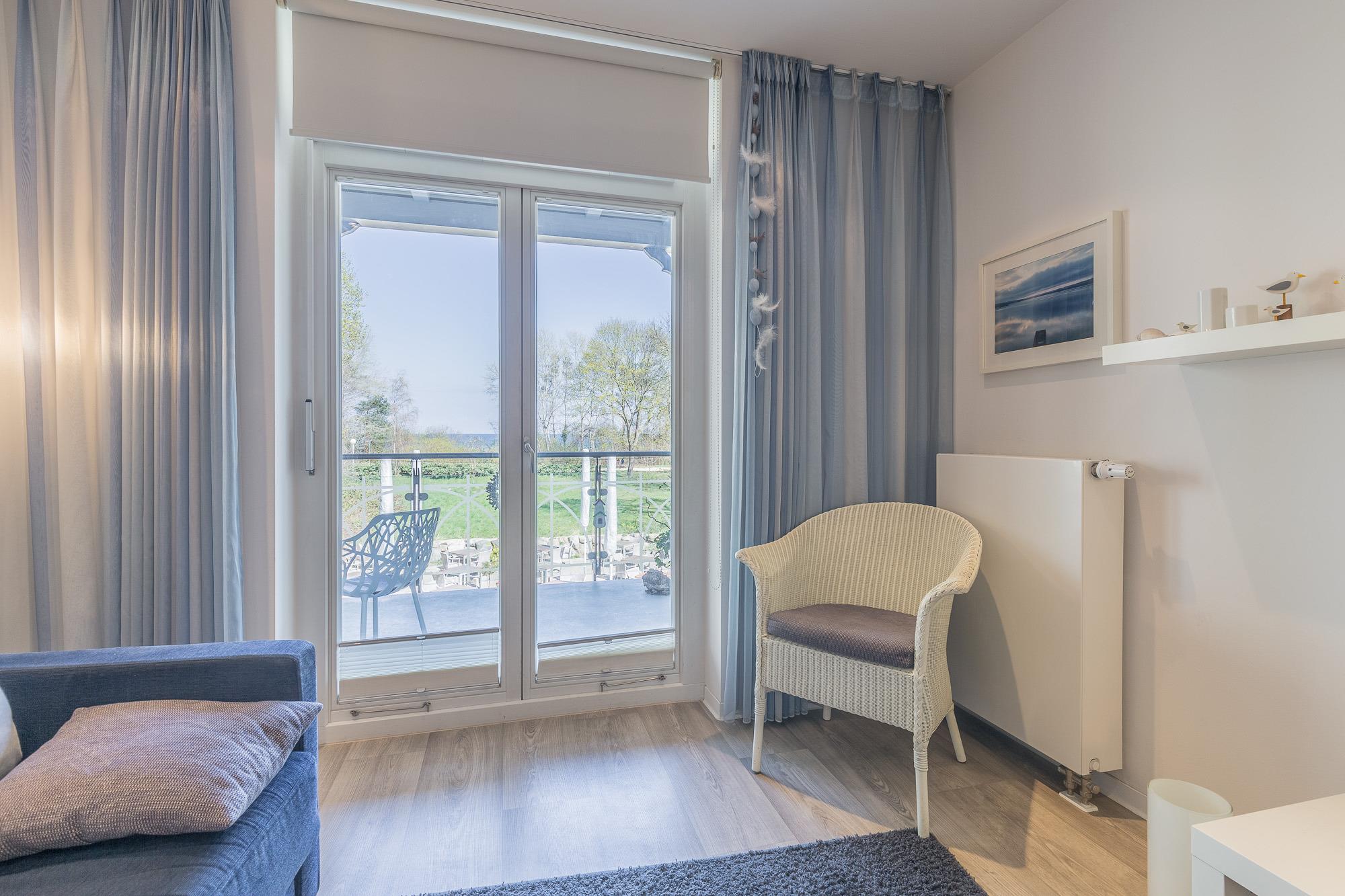 Sowohl das Wohnzimmer als auch das separate Schlafzimmer bieten Ihnen einen offenen und freundlichen Blick über die Anlage in Richtung Ostsee. Der großzügige Balkon ist nur eines der vielen Highlights Ihres Appartements.
