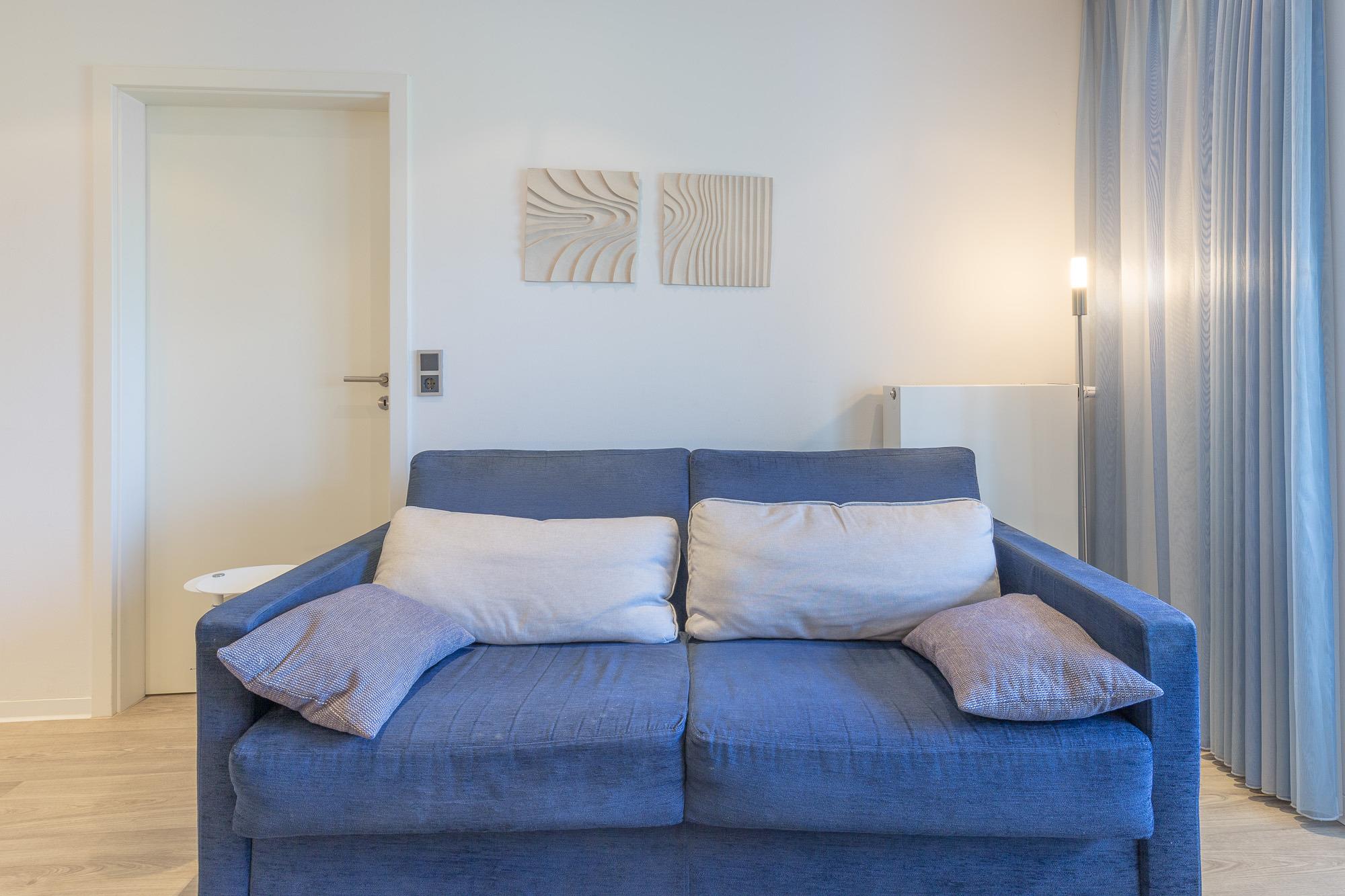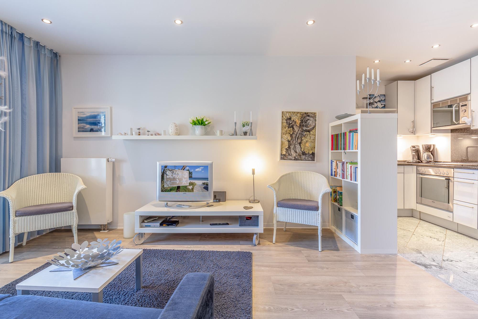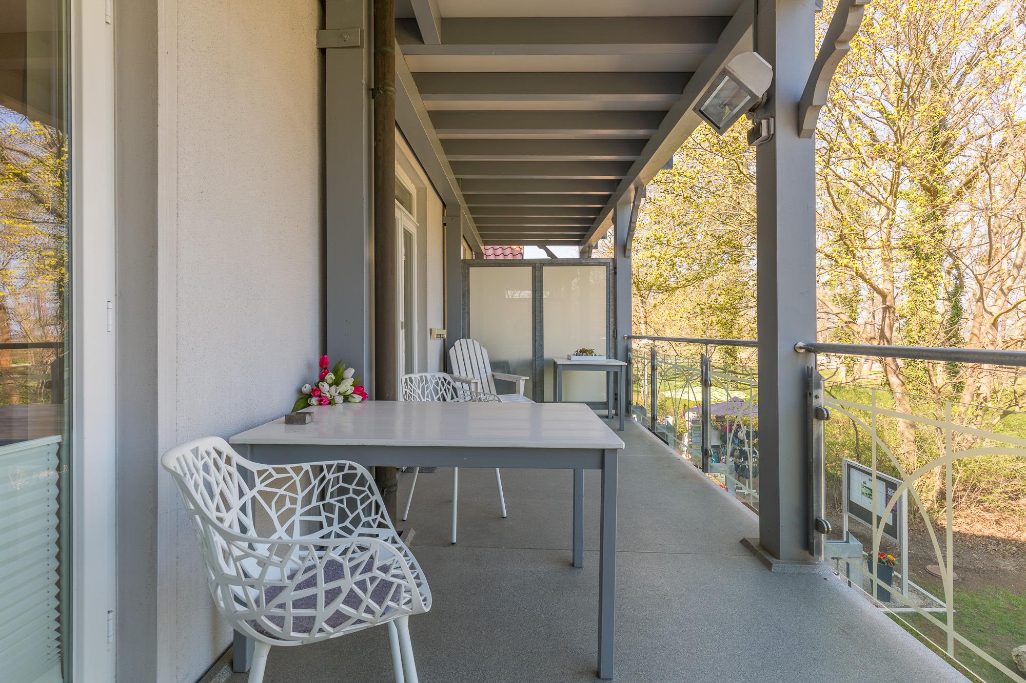 Sowohl das Wohnzimmer als auch das separate Schlafzimmer bieten Ihnen einen offenen und freundlichen Blick über die Anlage in Richtung Ostsee. Der großzügige Balkon ist nur eines der vielen Highlights Ihres Appartements.