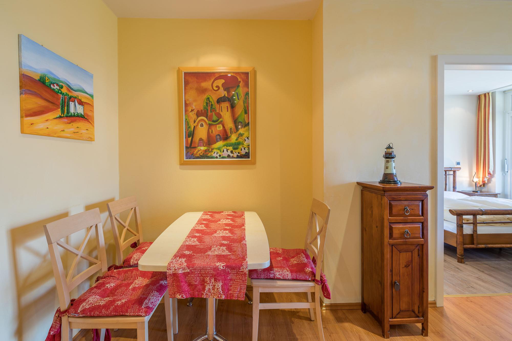 Im Schlafzimmer finden Sie einen geräumigen Kleiderschrank für Ihre Urlaubsgarderobe. Das Doppelbett hat 2 einzelne Matratzen (Liegefläche 180x200 cm). In der Villa Wagenknecht beziehen wir die Betten für Sie. Die Erstausstattung mit Bettwäsche und Handtüchern sind hier im Mietpreis inklusive. Auf dem Balkon genießen Sie in der kalten Jahrezeit Seeblick. Es stehen Balkonmöbel in der warmen Jahreszeit bereit. In der offiziellen Saisonzeit (Mitte Mai bis Mitte September) nutzen Sie am Strandzugang 7 einen Strandkorb. Er ist ebenfalls im Mietpreis inklusive.