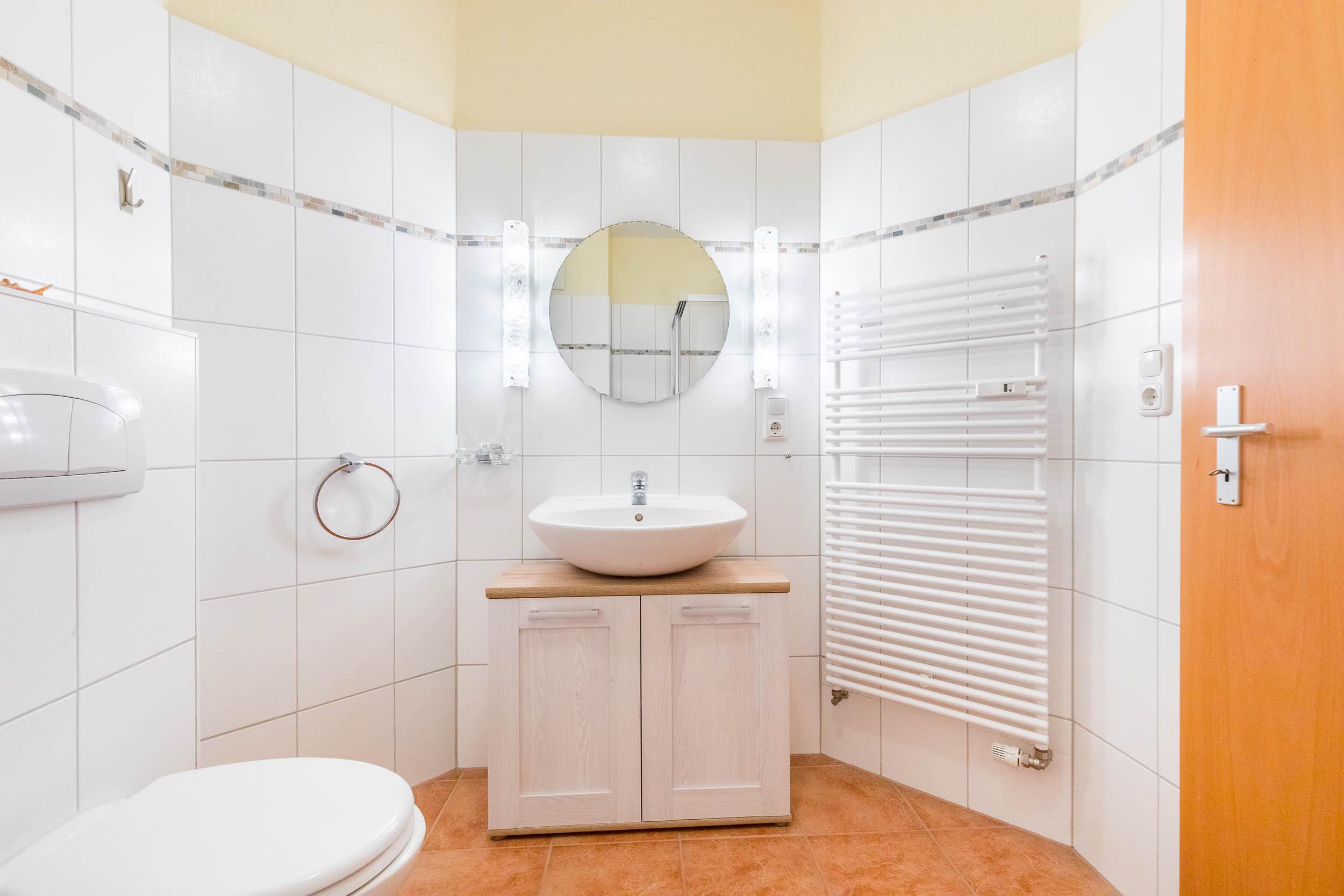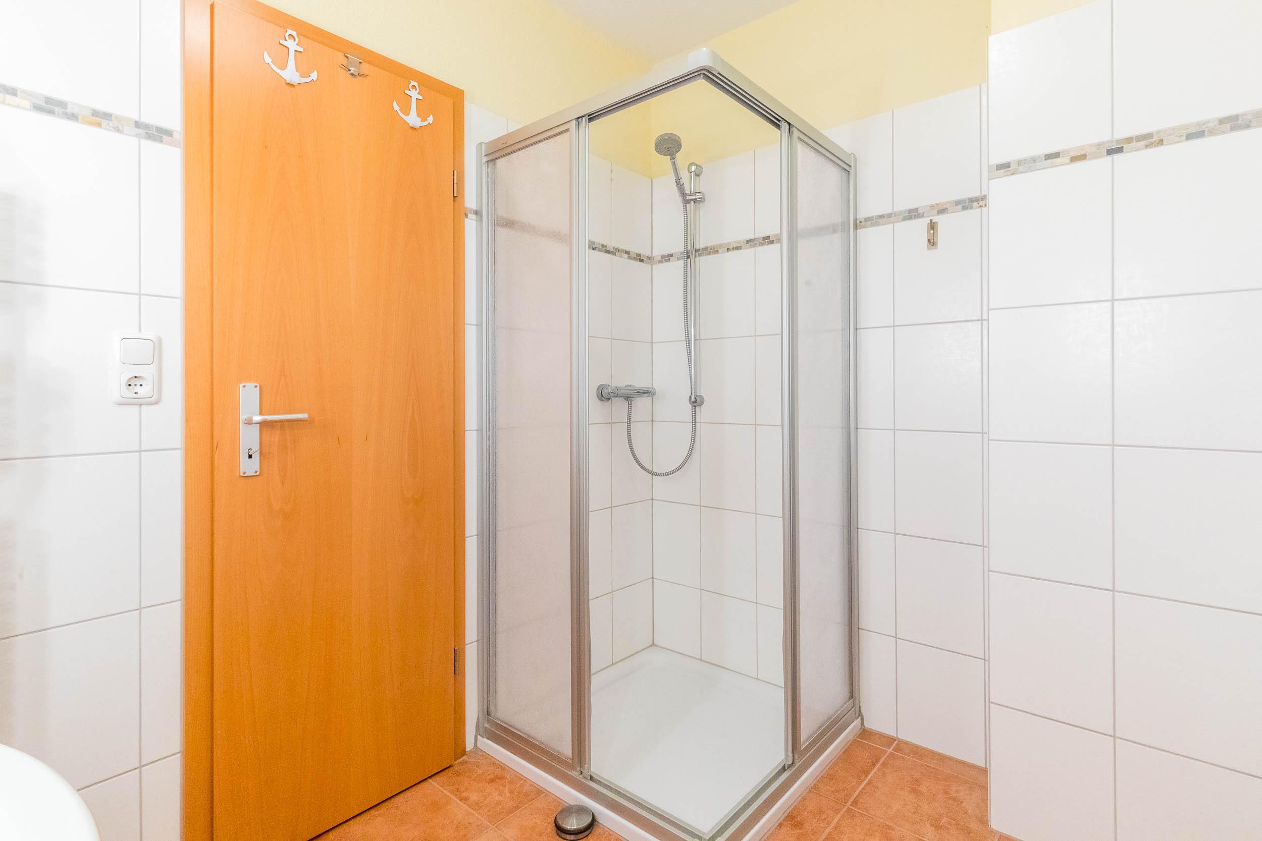 Ein modernes Duschbad mit Dusche und WC schließt sich an.