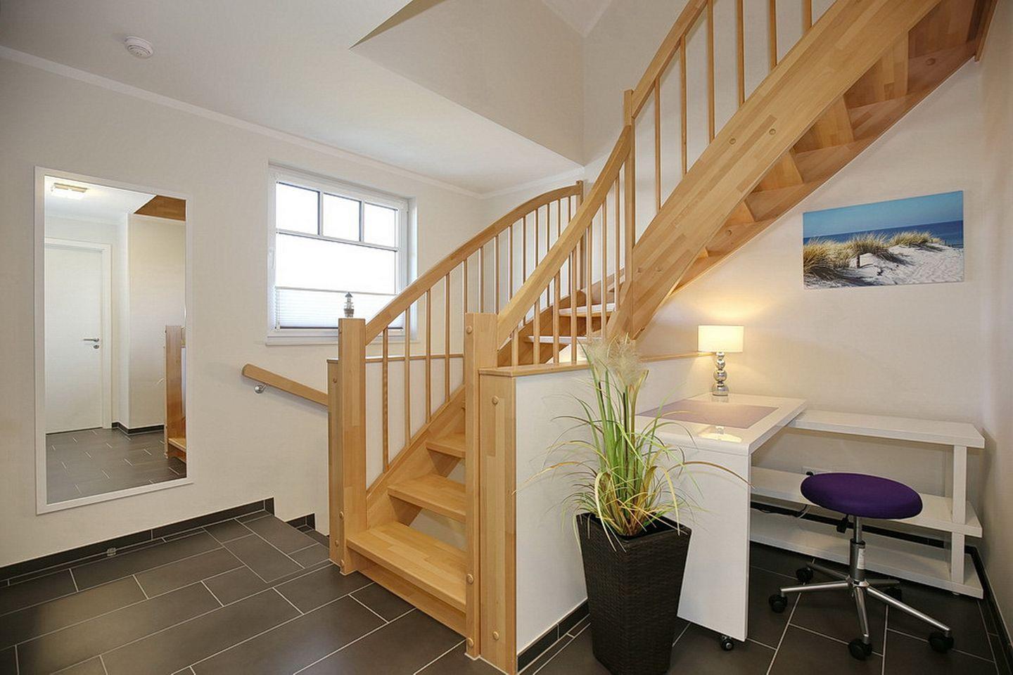 In dieser Nichtraucherwohnung sind Haustiere nicht erlaubt. Dieses moderne Ferienhaus hat einen kostenfreien WLAN-Zugang (ohne Gewähr). Der Bodenbelag im Untergeschoss und im Dachgeschoss sowie in den Bädern ist Fliese. Der Spitzboden ist mit einem modernen Design-Belag versehen.