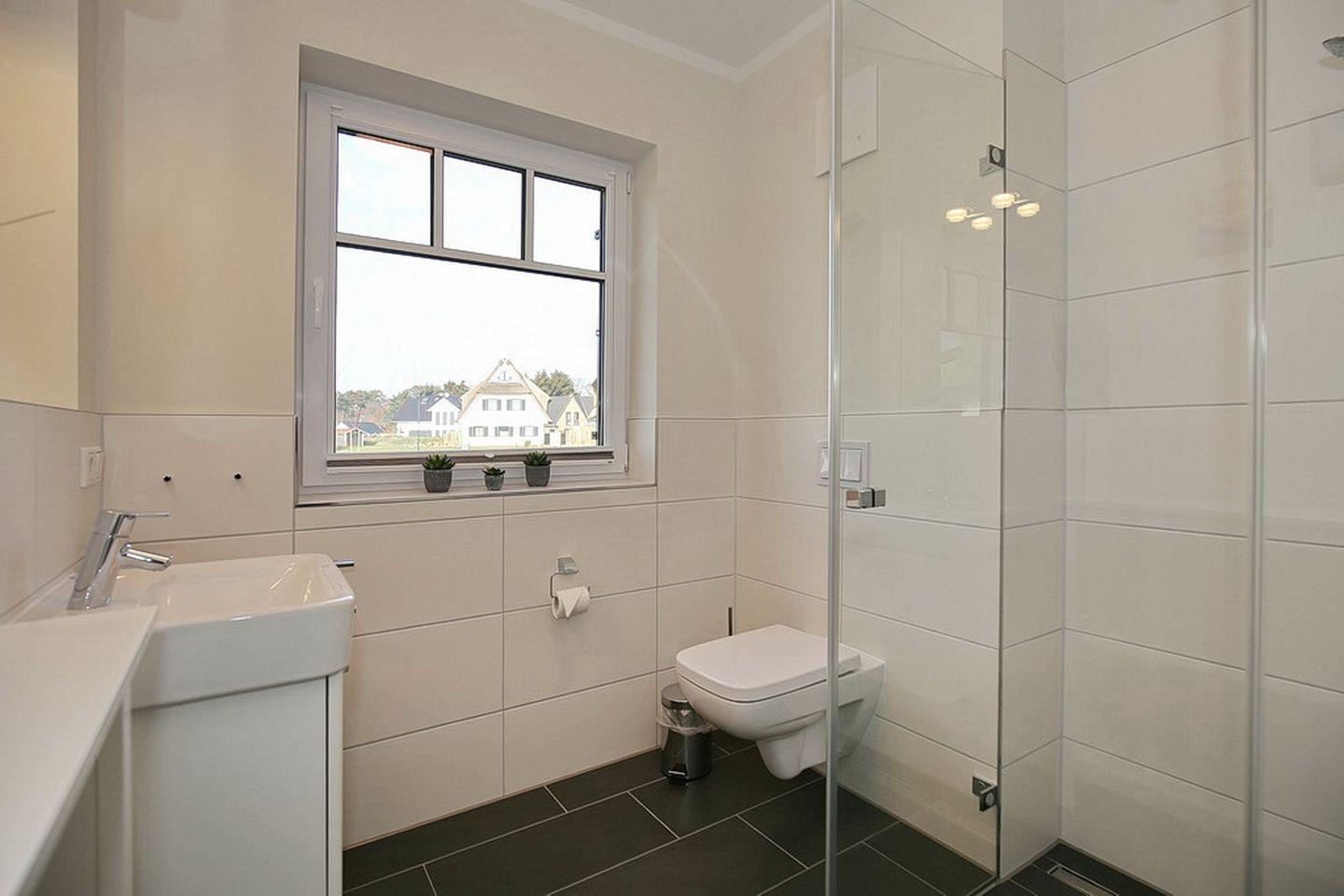 Alle Fenster in den Schlafzimmern des Dachgeschosses und der Bäder sowie im Küchen- und Essbereich verfügen über Insektenschutzgitter.