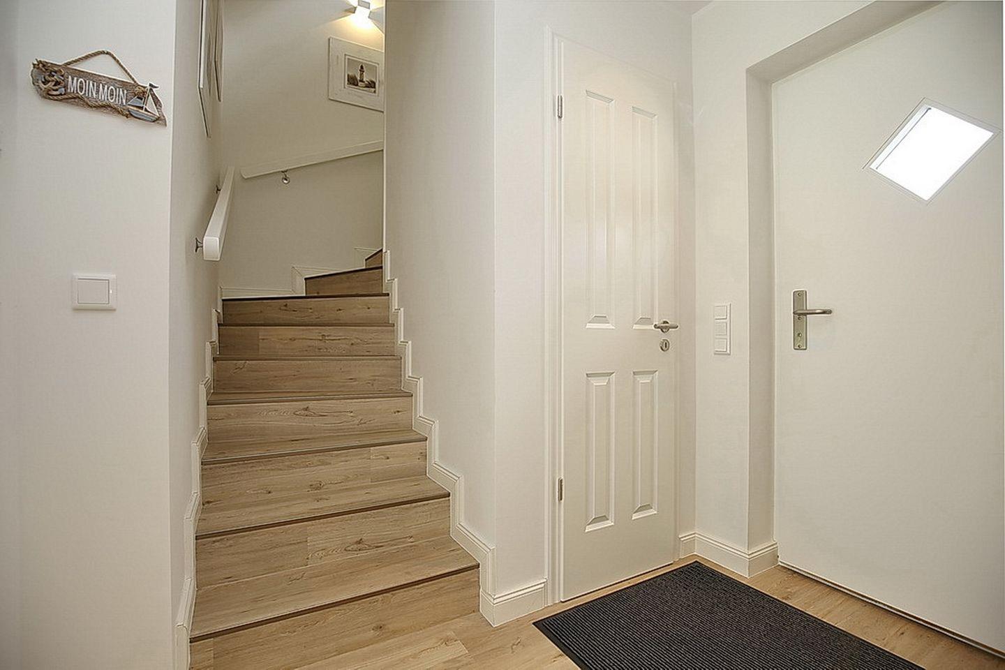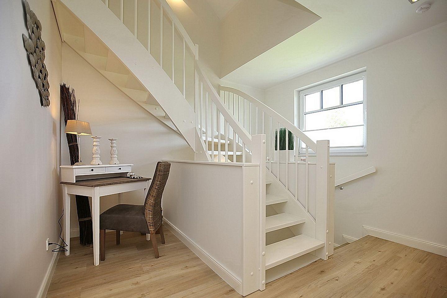 Auf drei Etagen vereint die großzügige Doppelhaushälfte mit Reetdach einen Wohnraum mit Zugang zur Terrasse, drei Schlafzimmer und zwei moderne Bäder. Zusammen mit dem Spitzboden hast du hier auf über 100 m² viel Platz für deinen Urlaub.