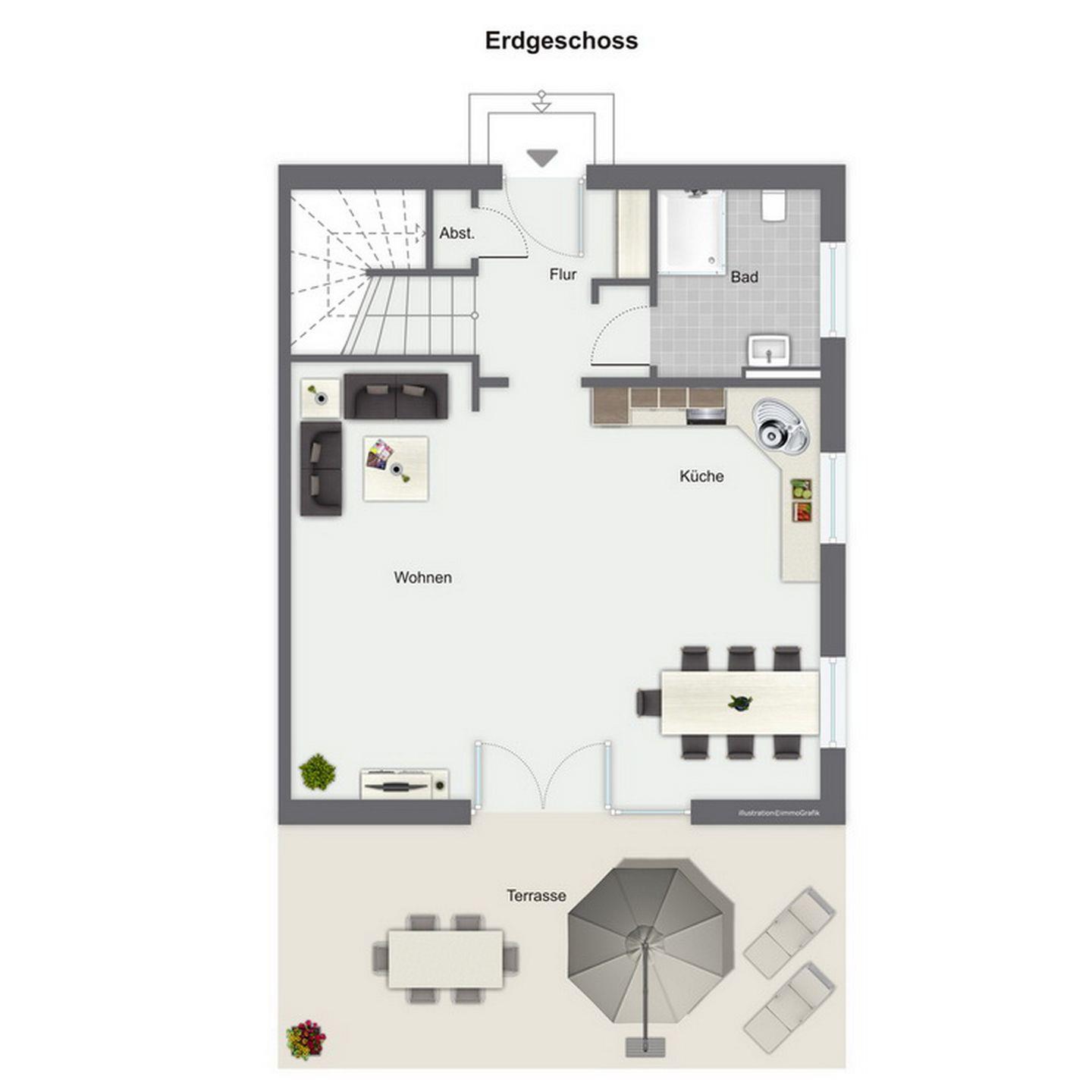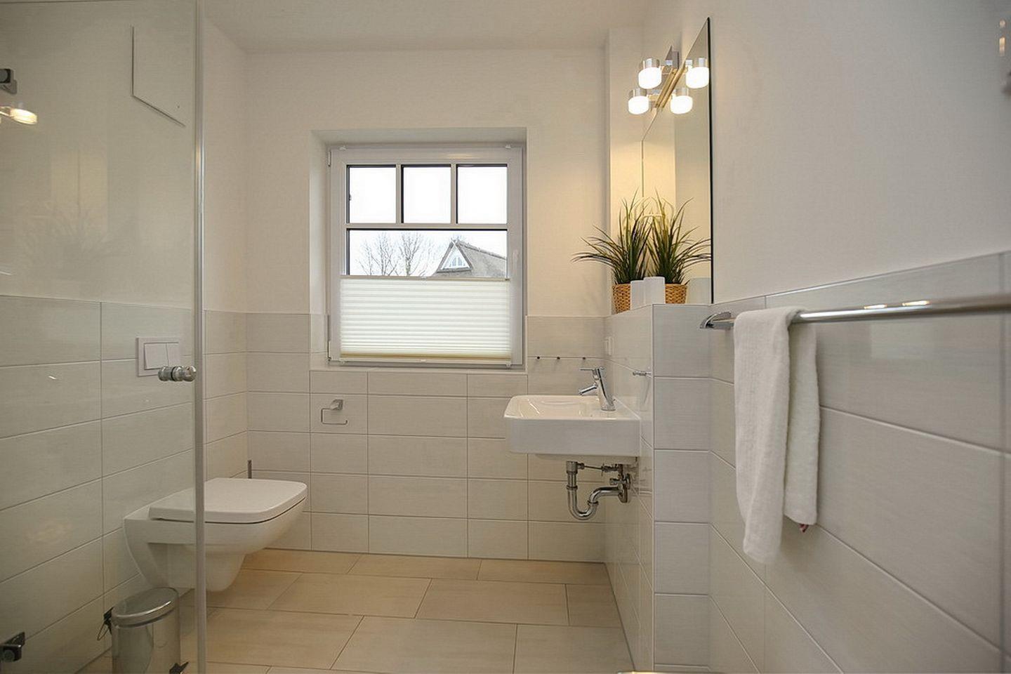 Auch das Gäste-WC mit Dusche sowie der Eingangsbereich befinden sich im Erdgeschoss.
