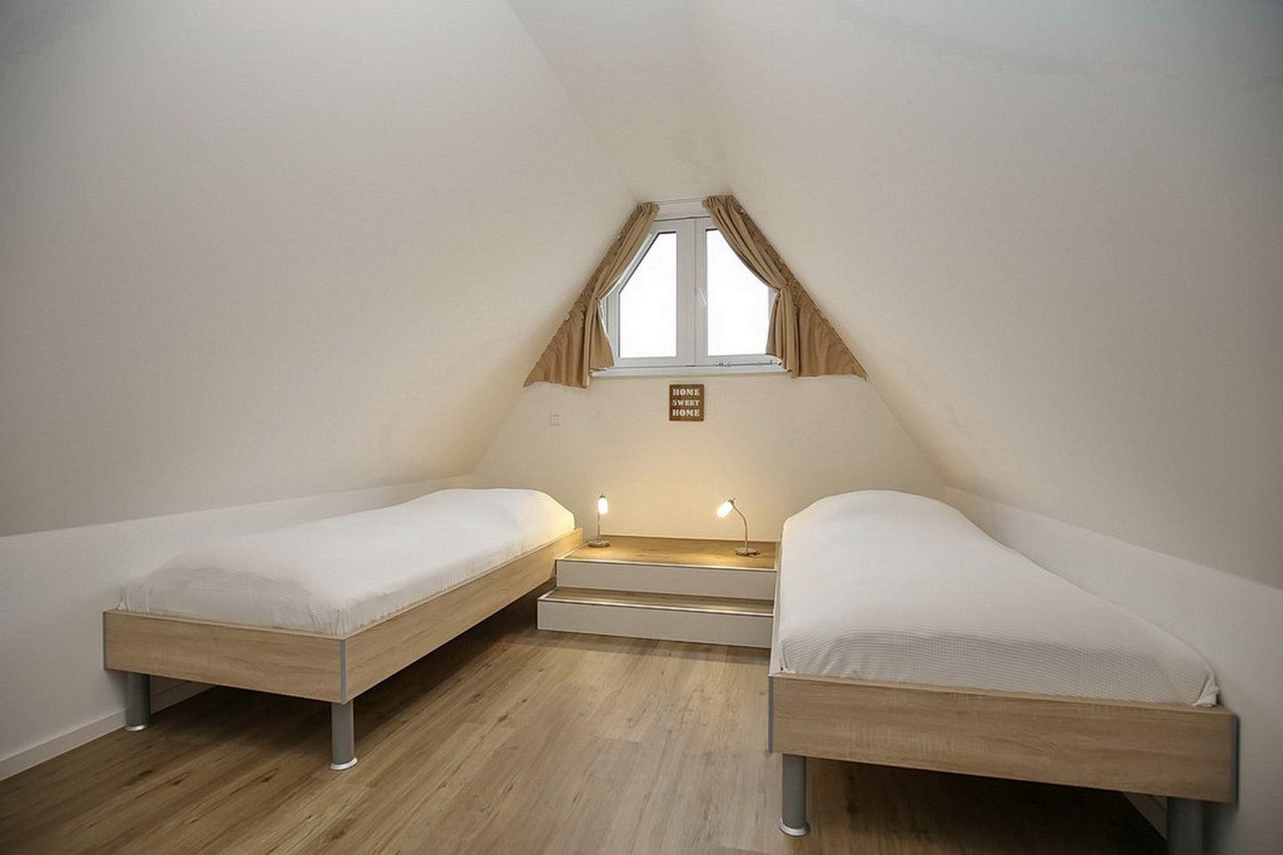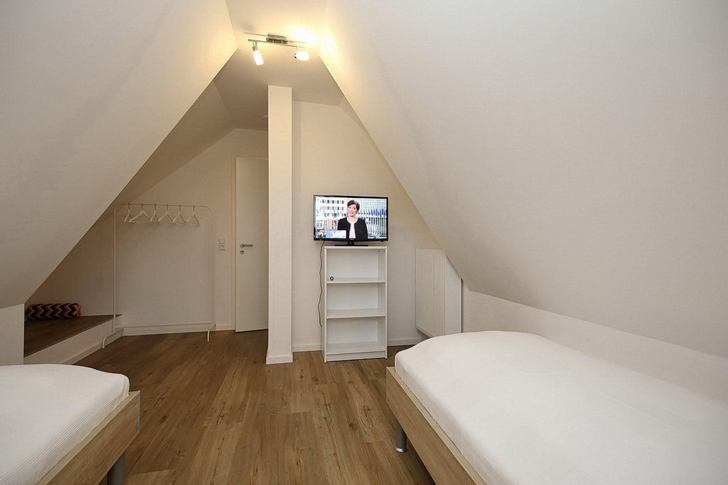 Im Spitzboden befindet sich ein weiteres Schlafzimmer, welches über zwei Einzelbetten (90 x 200 cm) und zusätzlich über einen weiteren Fernseher verfügt. Zur weiteren Ausstattung des Ferienhauses gehören ein Gemeinschaftsschuppen, eine Waschmaschine sowie ein Kinderreisebett, ein Hochstuhl und ein Bollerwagen (ohne Gewähr) kleinen Gäste. Das gesamte Haus verfügt über WLAN (ohne Gewähr). In diesem Nichtraucherhaus sind Haustiere nicht erlaubt.