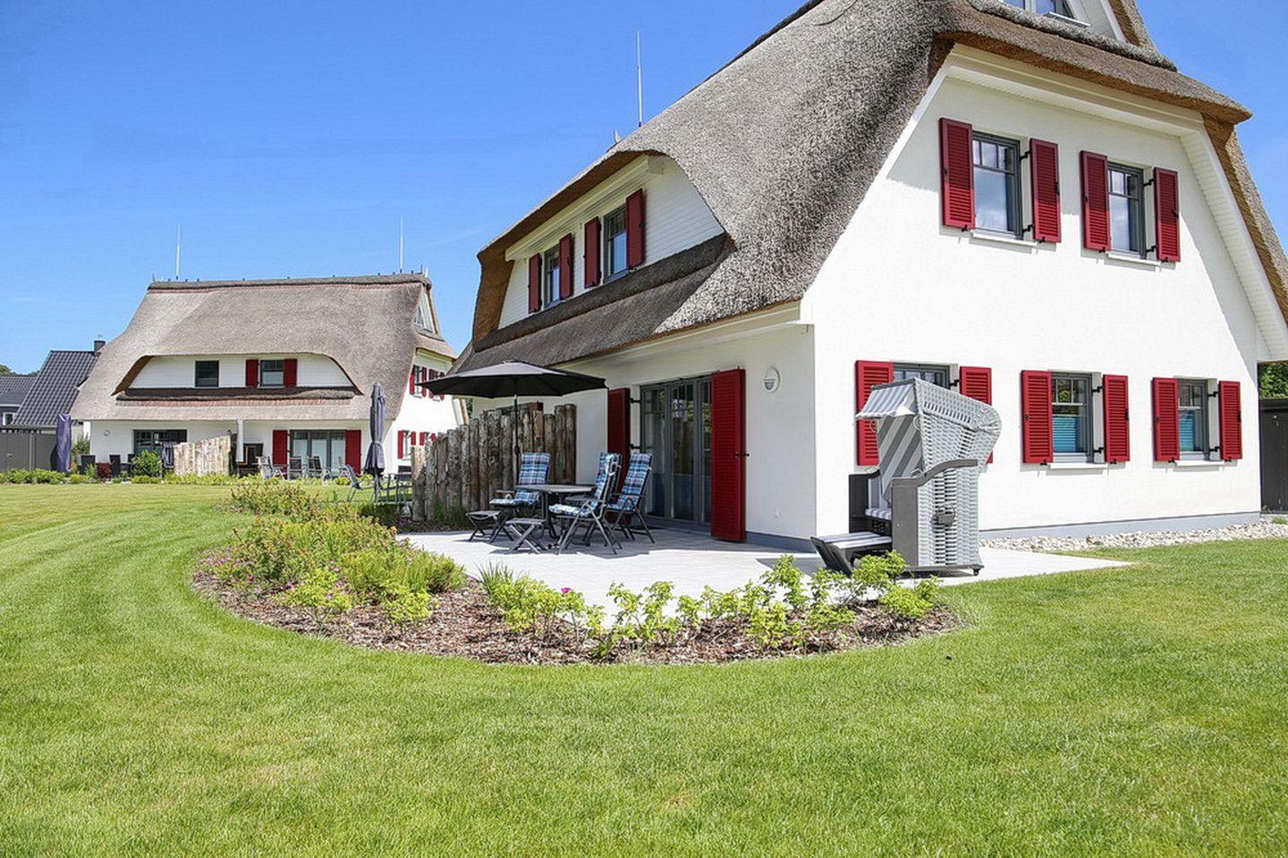 Drei Zimmer auf zwei Etagen stehen dir in diesem Ferienhaus mit Reetdach zur Verfügung. Genieße deinen Urlaub in seiner schönsten Form. Du bewohnst auf ca. 88 m² den Wohnraum mit Zugang zur Terrasse, zwei Schlafzimmer und zwei Bäder.