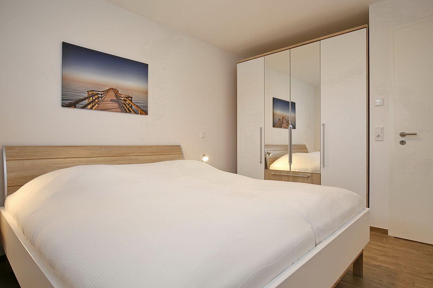 In den Schlafzimmern im Dachgeschoss stehen dir ein Doppelbett (2 x 90 x 200 cm) und zwei Einzelbetten (100 x 200 cm), jeweils ein TV sowie Kleiderschränke mit ausreichend Platz für deine Urlaubsgarderobe zur Verfügung. Beide Schlafzimmer verfügen über eine Verdunkelungsmöglichkeit. Des Weiteren verfügt das Dachgeschoss über ein Bad mit Badewanne sowie den Flur.