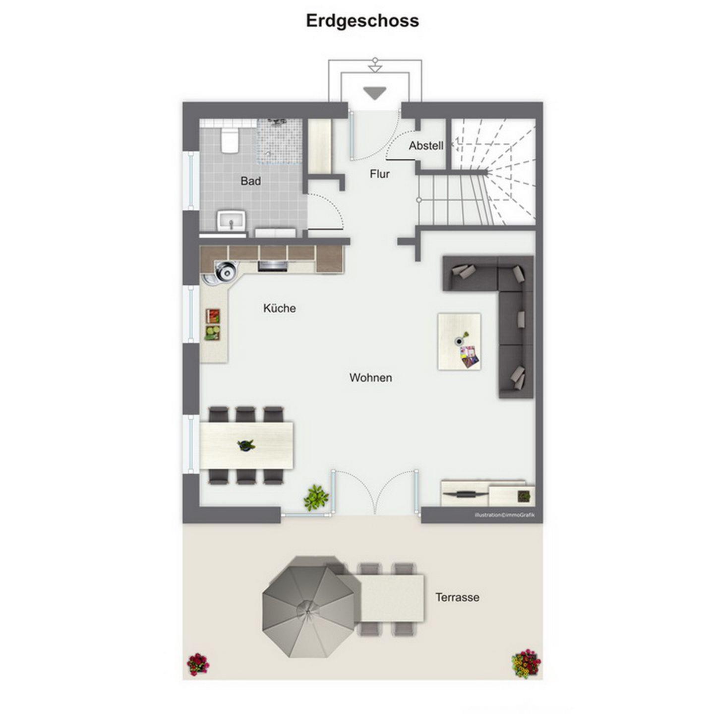 Der Zugang zur Süd-West Terrasse erfolgt direkt vom Wohnzimmer aus und gibt den Blick frei ins Grüne. Hier kannst du mit dem hauseigenen WMF-Kombigrillgerät gemütliche Abende verbringen. Für deine Unterhaltung stehen dir ein Flachbild-TV, ein DVD-Player und eine Stereoanlage zur Verfügung. Zwei zusätzliche TVs können in den Schlafräumen genutzt werden.