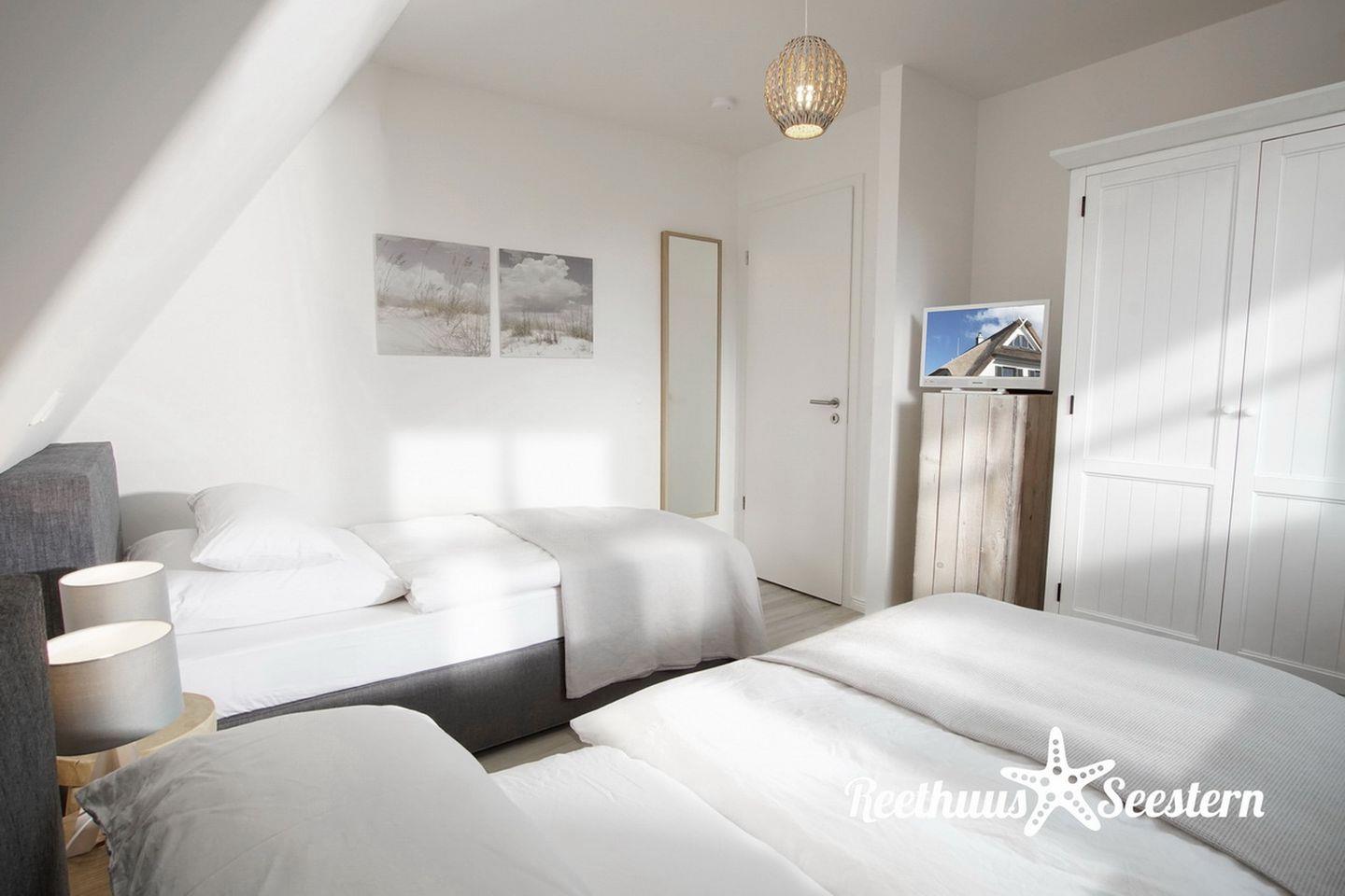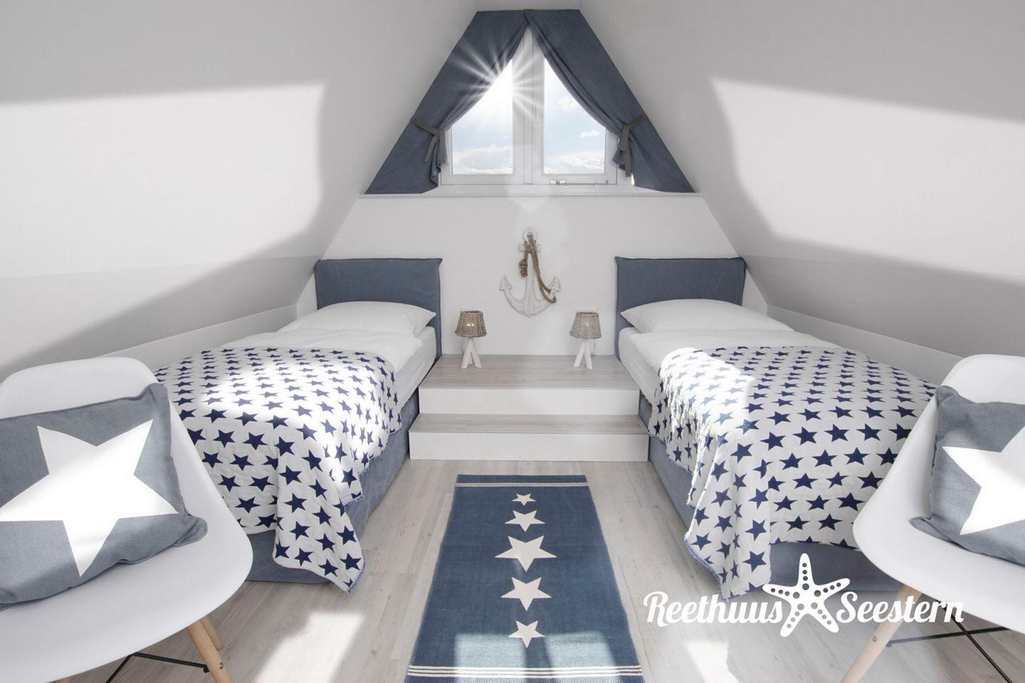 Das Ferienhaus 05a „Reethuus Seestern“ im Ferienresort am Mariannenweg ist eine Doppelhaushälfte mit 4 Zimmern für bis zu 6 Personen.