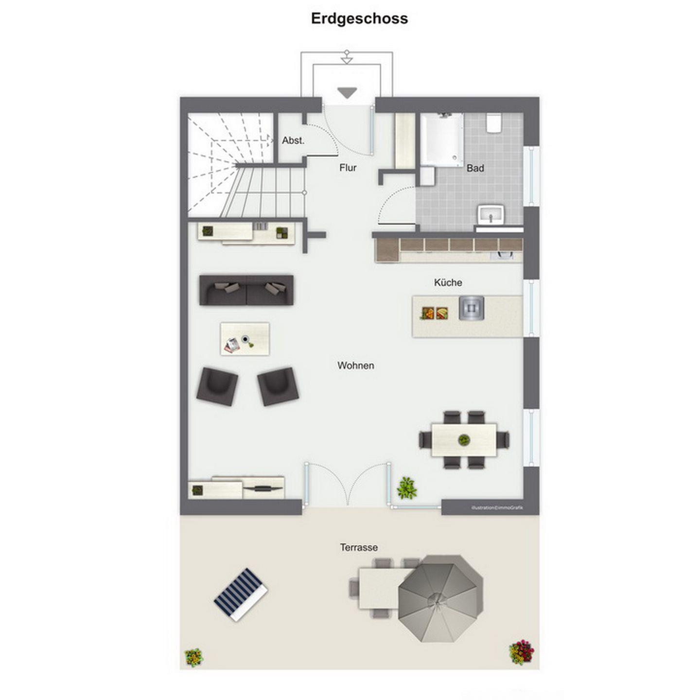Der Zugang zur großen möblierten Süd-/West Terrasse mit Strandkorb erfolgt direkt vom Wohnzimmer aus. Von dieser habt ihr einen freien Blick in den Garten. Für eure Unterhaltung stehen euch ein Flachbild-TV und eine Stereoanlage zur Verfügung. Zwei zusätzliche Fernseher könnt ihr in den Schlafzimmern des ersten Obergeschosses nutzen.
