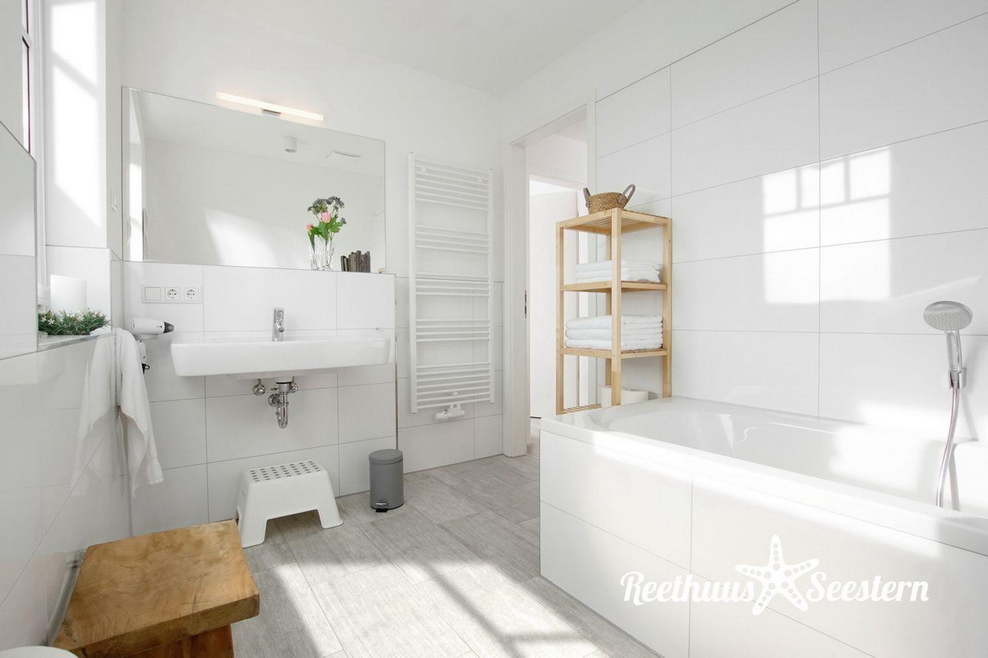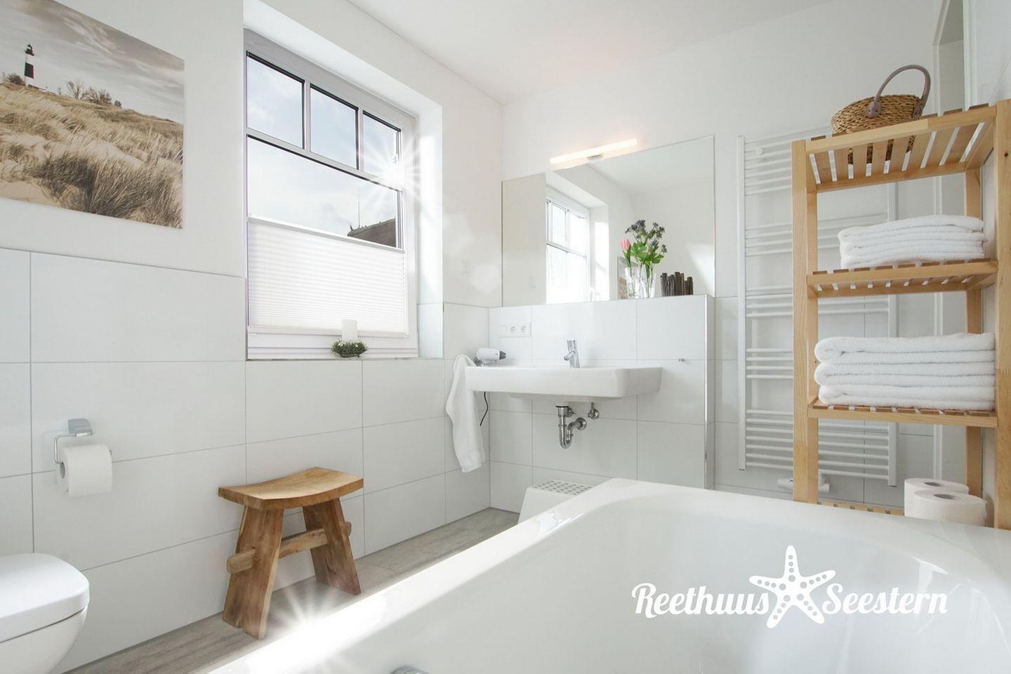 Die Badezimmer sind im Erdgeschoss mit einer ebenerdigen Dusche, im Obergeschoss mit einer Badewanne ausgestattet. Im Dachgeschoss befindet sich eine Abstellkammer für eure Koffer - in dieser steht euch auch ein Babyreisebett mit Matratze (aus hygienischen Gründen ohne Decke oder Kissen), ein Kinderhochstuhl „Tripp-Trapp“ sowie ein Babyhochstuhl und ein Baby-Treppengitter zur Verfügung. Außerdem steht ein Elektrogrill und ein Bollerwagen (ohne Rechtsanspruch) im anteilig zu nutzenden Gartenschuppen für euch bereit.