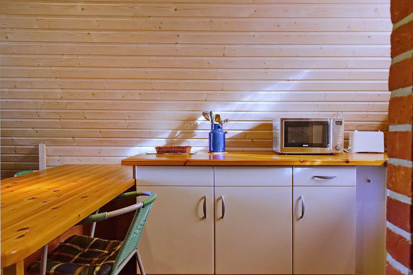 Die Finnhütte an der Steilküste bietet Platz für bis zu 4 Personen. Die Terrasse ist nord-westlich ausgerichtet. Eine Mikrowelle ist vorhanden. WLAN (ohne Gewähr) inklusive.