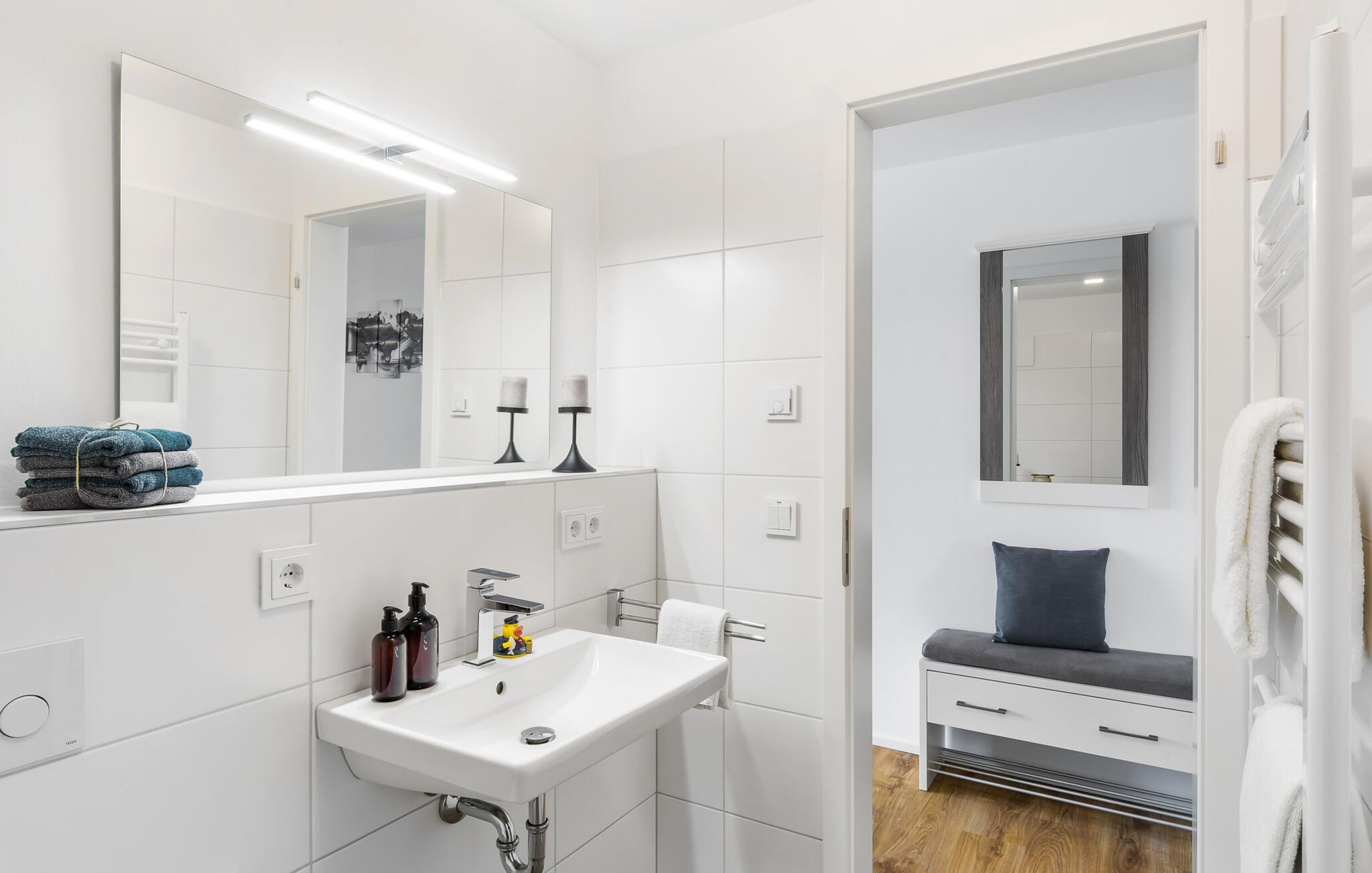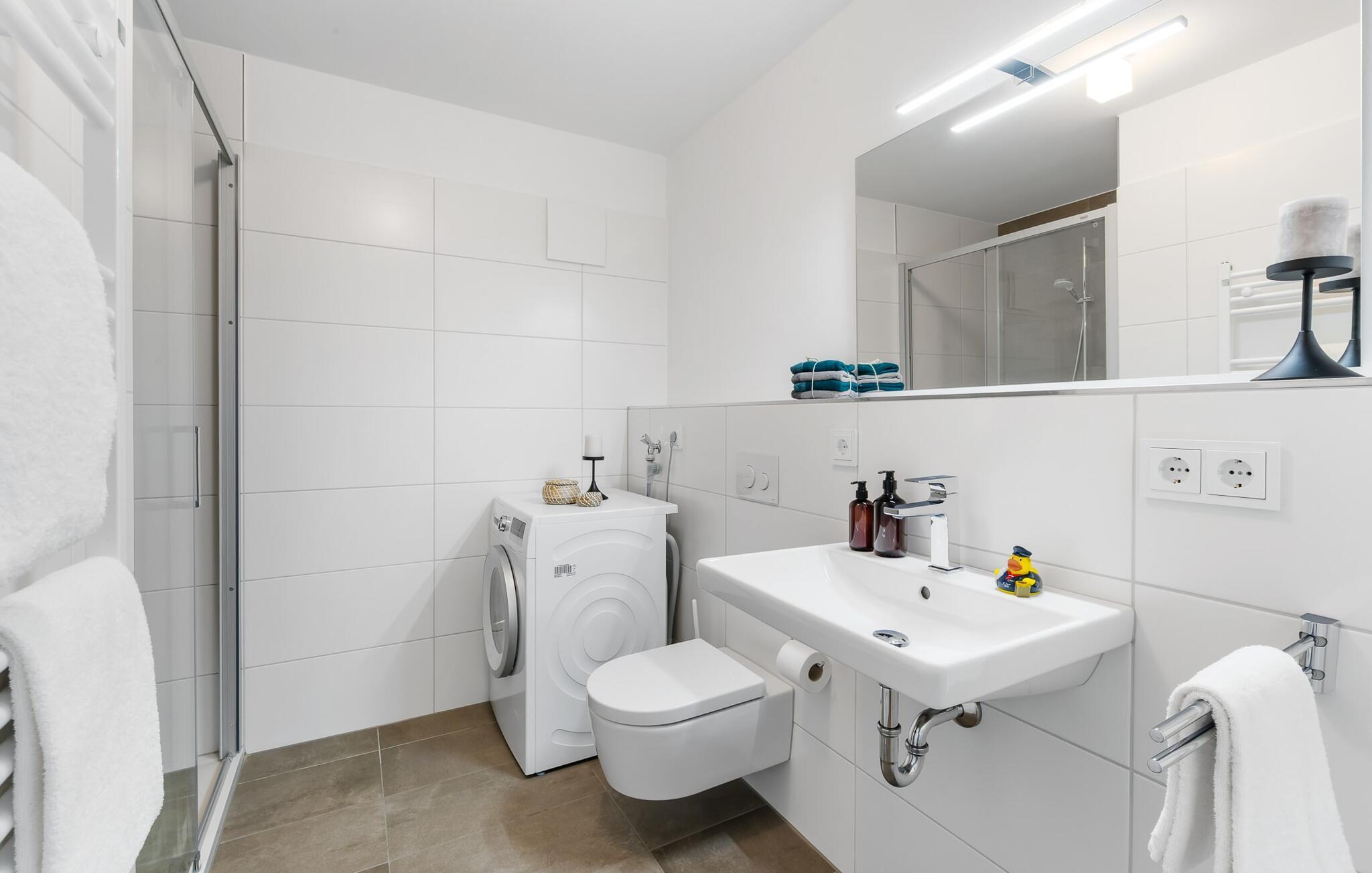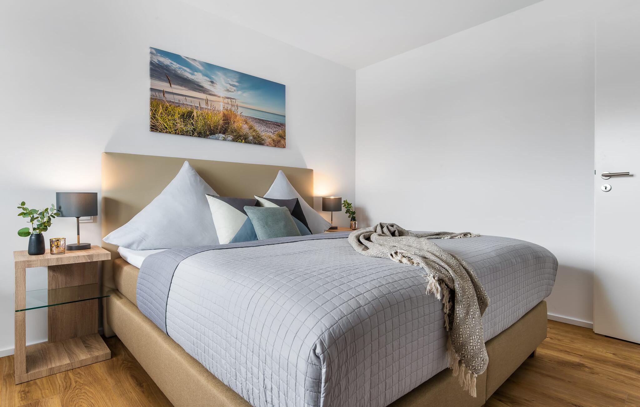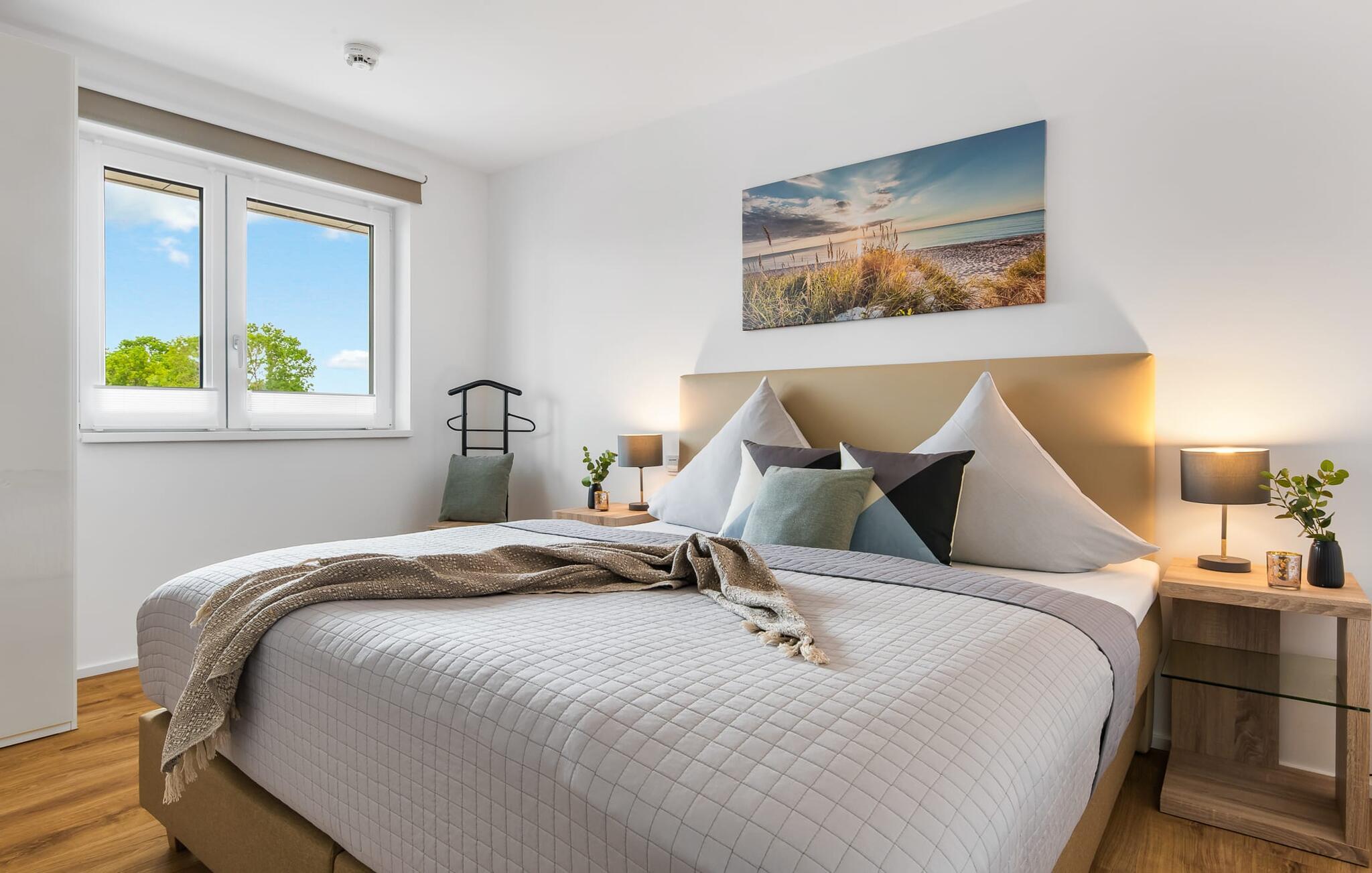 Den højkvalitets og stilfuldt indrettede ferielejlighed BONITA VISTA I, hvis navn er baseret på den fantastiske udsigt over Østersøen, scorer med en eksklusiv beliggenhed direkte på havnepromenaden i Baltic Sea Resort Olpenitz. Havnepromenaden ligger neden for ferielejligheden og byder på et voksende udvalg af muligheder og korte afstande til indkøb og de bedste muligheder for spadseretur. Den lyse oase af velvære med gulv til loft-vinduer og balkon byder på en skøn havnebiograf med udsigt til de flydende huse, østersøfjorden Slien med sejlskibe, der passerer forbi, og det lille fyrtårn i Schimmelünde. Føl jer godt tilpas på altanen og se sejlskibene sejle forbi i den farverige aftensol eller, hvis vejret er dårligt, brug sofahjørnet i opholdsrummet, så gulvvarmen kan varme jer op. Lejlighedens sporty, romantiske indretning imponerer med deres moderne flair og den vellykkede rumlige forbindelse af tekøkkenet til den eksklusive opholdsstue, som understreger den behagelige atmosfære i de rolige omgivelser. Fællesspil og bøger er tilgængelige til underholdning. Ud over den komfortable dobbeltseng i soveværelset er der endnu et sted at sove for små børn på sovesofaen i stuen (soveareal 120x120 cm). Det fuldt udstyrede køkken lader intet tilbage at ønske - her kan man fremtrylle lækre måltider. Der er dog også mulighed for at planlægge gode grillaftener udenfor, da der er grill og havemøbler til rådighed på den lille, men hyggelige altan. Badeværelset har en moderne bruser i gulvniveau, et vaskeskab med underskab og et stort spejl. P-pladsen tilknyttet ferielejligheden nås komfortabelt og barrierefrit fra lejligheden på 1. sal via elevator. Vores favoritsted: Afslut dagen ved solnedgang i godt selskab med et vinglas i hånden og nyd den friske havbrise... Bemærk venligst: OstseeResort Olpenitz er meget populært, og der bygges fortsat i parken. Ikke desto mindre kan I se frem til en 5-stjernet standard og et førsteklasses ophold. Byggeaktiviteterne kommer ikke til at forstyrre jer på ferien, og derfor gives der ikke yderligere afslag i prisen.