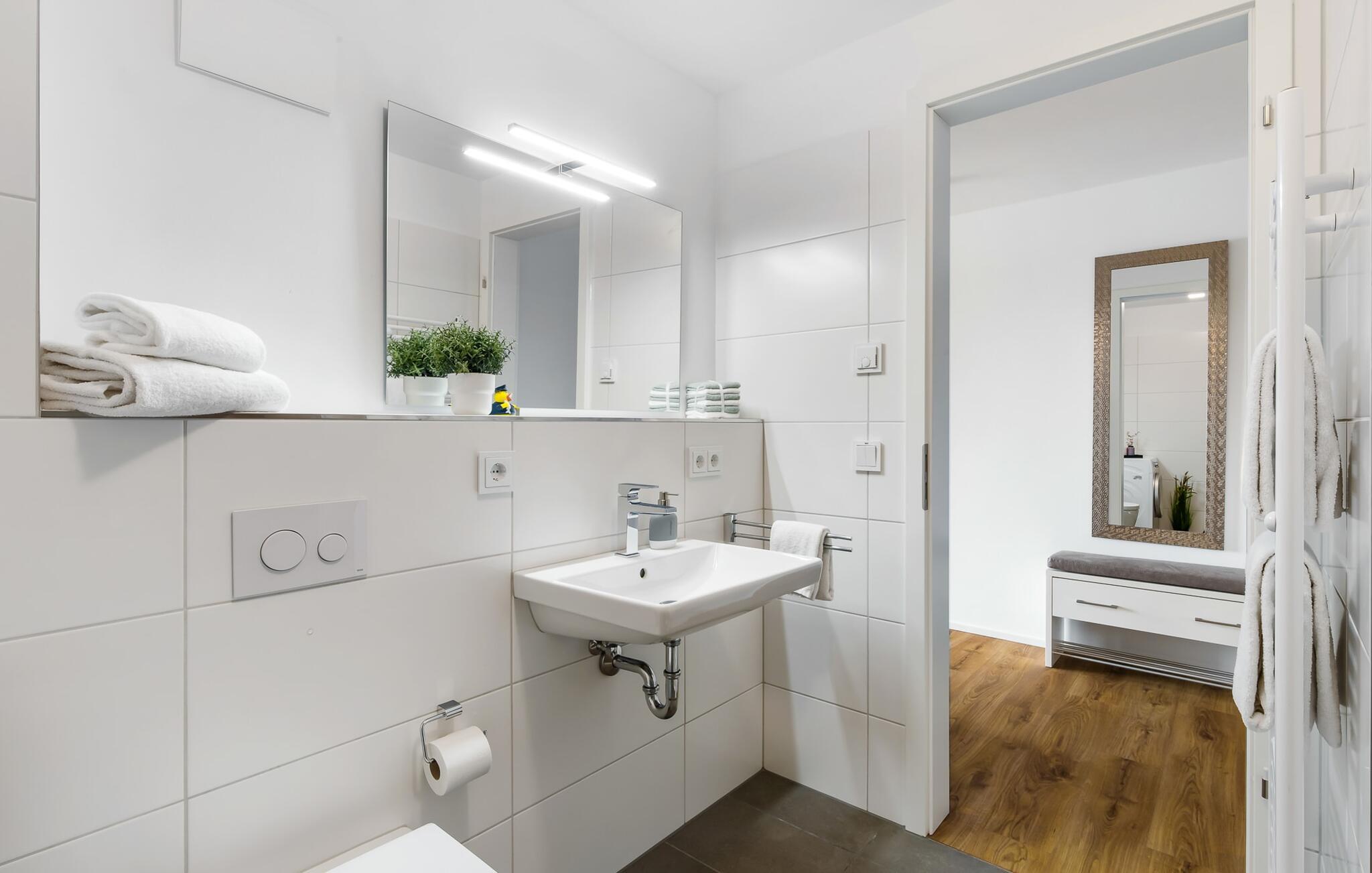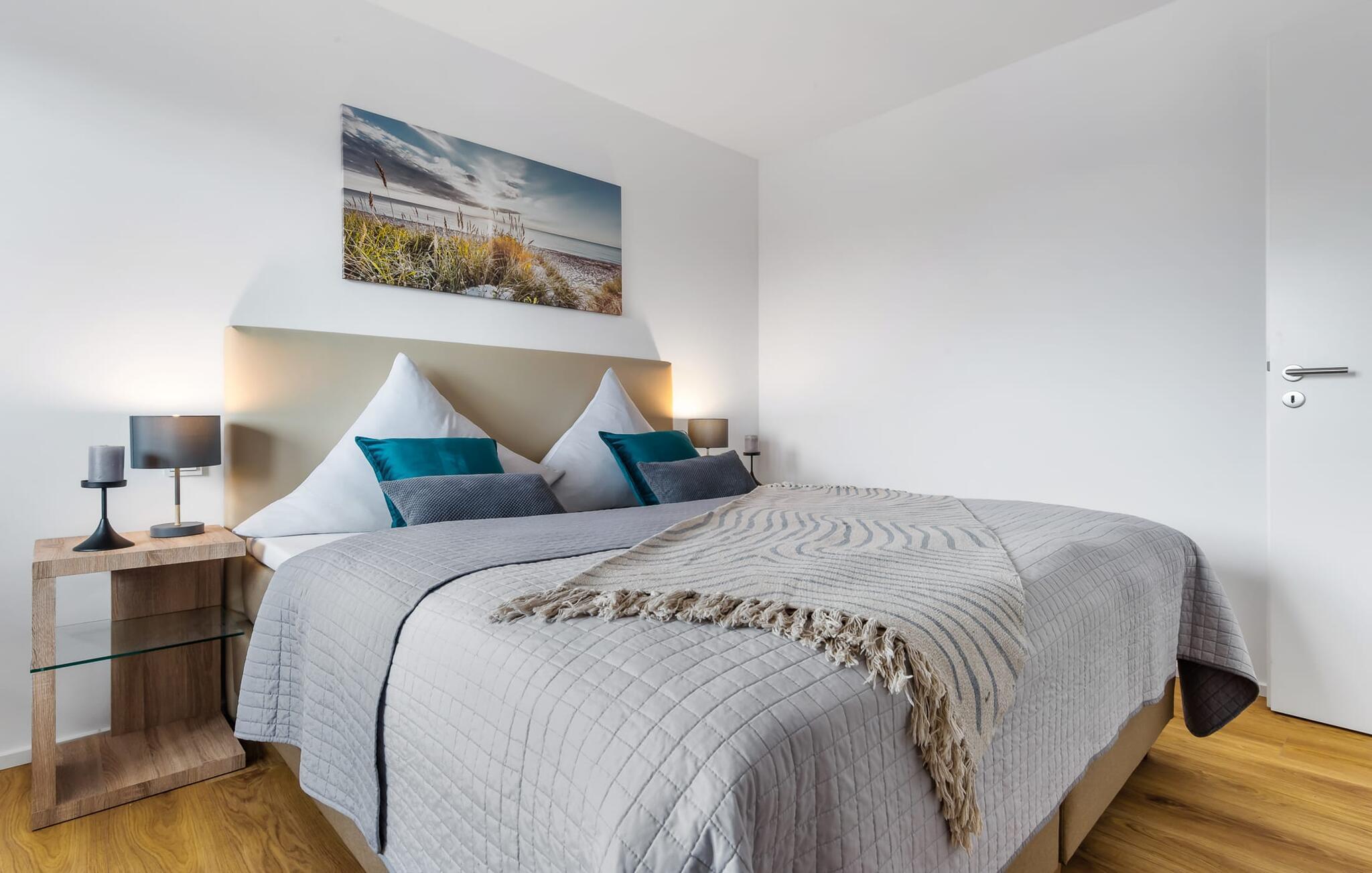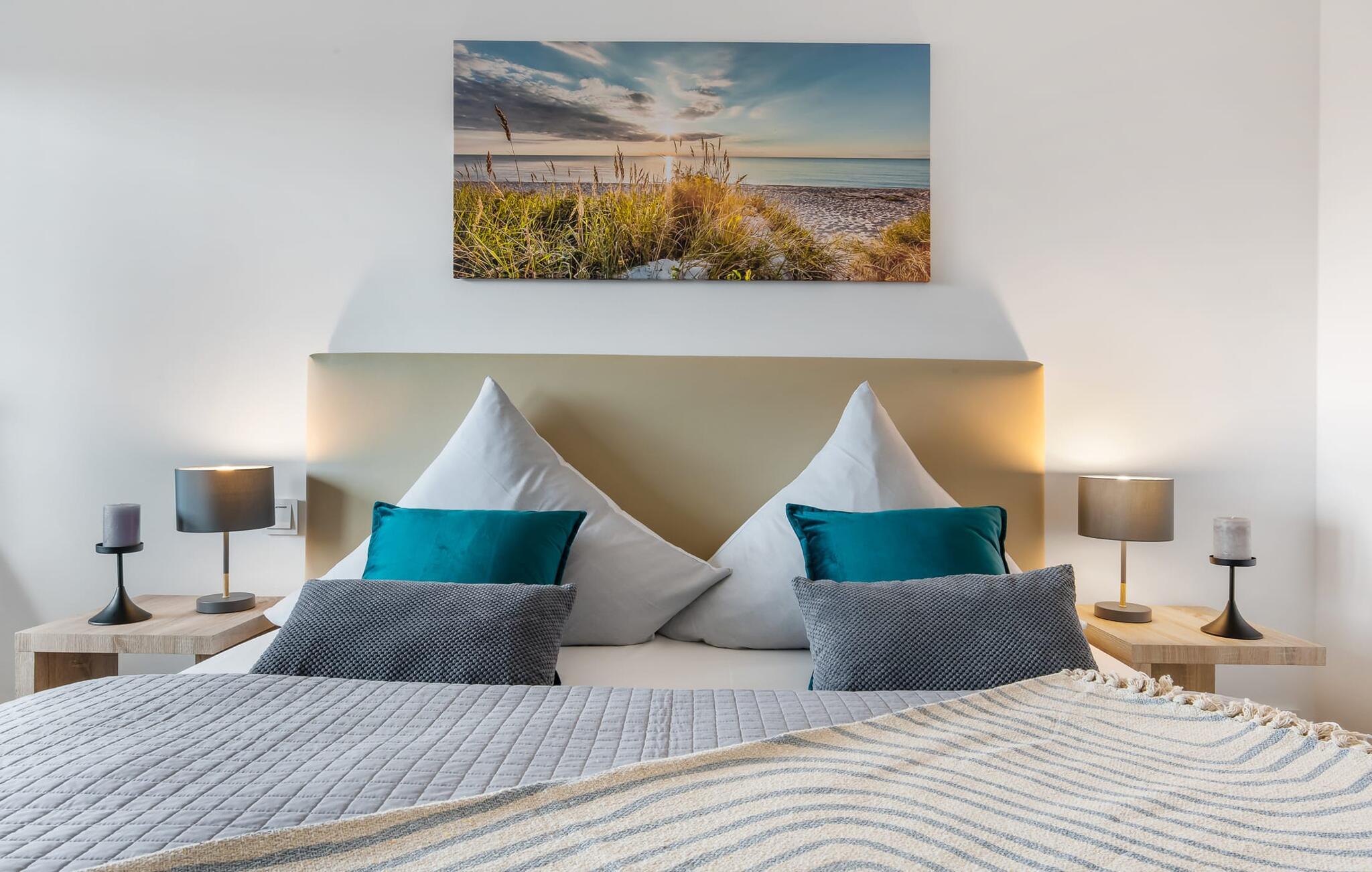 Den højkvalitets og stilfuldt indrettede ferielejlighed BONITA VISTA II, hvis navn er baseret på den fantastiske udsigt over Østersøen, scorer med en eksklusiv beliggenhed direkte på havnepromenaden i Østersøresortet Olpenitz. Havnepromenaden ligger neden for ferielejligheden og byder på et voksende udvalg af muligheder og korte afstande til indkøb og de bedste muligheder for spadseretur. Den lyse oase af velvære med gulv til loft-vinduer og balkon byder på en skøn havnebiograf med udsigt til de flydende huse, østersøfjorden Slien med sejlskibe, der passerer forbi, og det lille fyrtårn i Schimmelünde. Føl jer godt tilpas på altanen og se sejlskibene sejle forbi i den farverige aftensol eller, hvis vejret er dårligt, brug sofahjørnet i opholdsrummet, så gulvvarmen kan varme jer op. Lejlighedens sporty, romantiske indretning imponerer med deres moderne flair og den vellykkede rumlige forbindelse af tekøkkenet til den eksklusive opholdsstue, som understreger den behagelige atmosfære i de rolige omgivelser. Fællesspil og bøger er tilgængelige til underholdning. Ud over den komfortable dobbeltseng i soveværelset er der endnu et sted at sove for små børn på sovesofaen i stuen (soveareal 120x120 cm). Det fuldt udstyrede køkken lader intet tilbage at ønske - her kan man fremtrylle lækre måltider. Der er dog også mulighed for at planlægge gode grillaftener udenfor, da der er grill og havemøbler til rådighed på den lille, men hyggelige altan. Badeværelset har en moderne bruser i gulvniveau, et vaskeskab med underskab og et stort spejl. P-pladsen tilknyttet ferielejligheden nås komfortabelt og barrierefrit fra lejligheden på 1. sal via elevator. Vores favoritsted: Afslut dagen ved solnedgang i godt selskab med et vinglas i hånden og nyd den friske havbrise... Bemærk venligst: OstseeResort Olpenitz er meget populært, og der bygges fortsat i parken. Ikke desto mindre kan I se frem til en 5-stjernet standard og et førsteklasses ophold. Byggeaktiviteterne kommer ikke til at forstyrre jer på ferien, og derfor gives der ikke yderligere afslag i prisen.