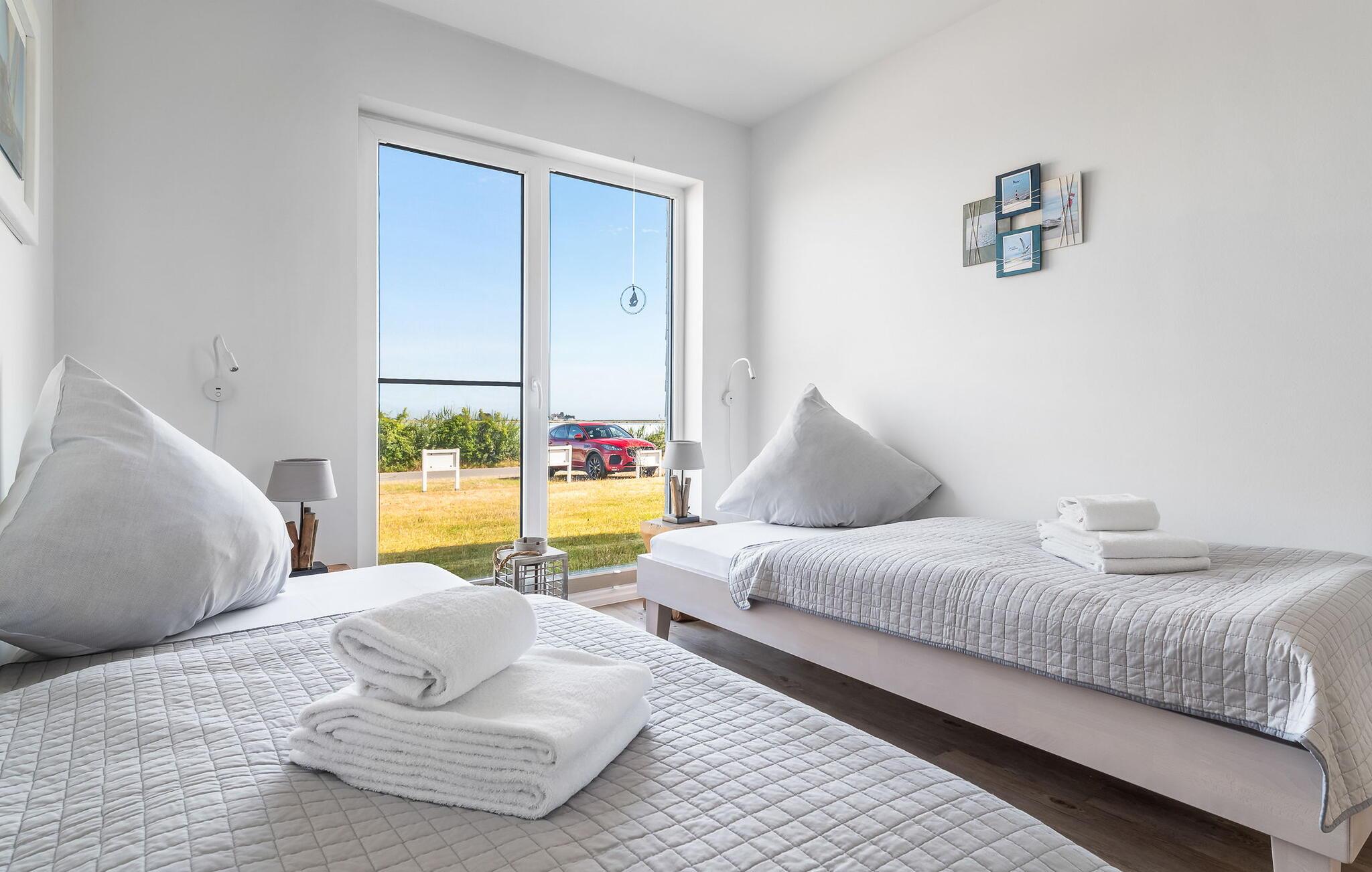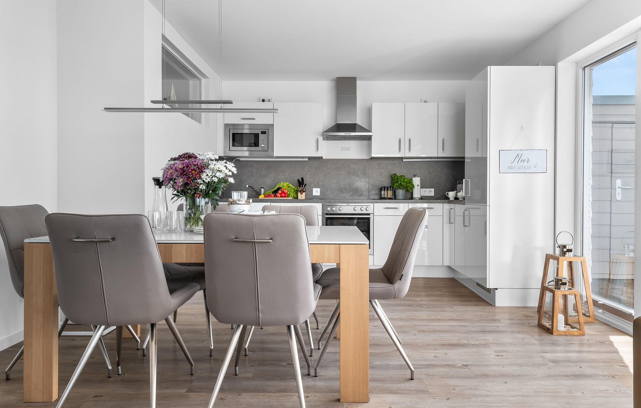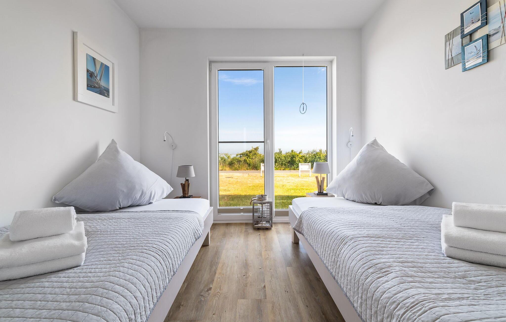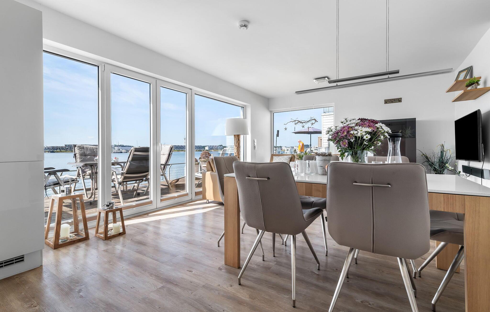 Her taler navnet for sig selv! I lejligheden, der ligger på et smalt næs mellem østersøfjorden Slien og sejl- og lystbådshavnen, kan I beundre bådene der passerer forbi og havnebiografen dagen lang. Den sydvendte terrasse og det grønne område inviterer til solbadning, leg og afslapning. En privatlivsskærm sikrer privatlivets fred. Den hvide sandstrand i feriestedet ved Østersøen kan også nås til fods. Den åbne opholds- og spisestue danner lejlighedens hjerte og byder velkommen med gulv til loft vinduer, moderne maritim indretning og et hyggeligt sofahjørne til afslappede tv-aftener. Køkkenet er fuldt udstyret og lader intet tilbage at ønske. Fra opholds- og spiseafdelingen er der udgang til den sydvendte terrasse med en fantastisk udsigt over lystbådehavnen. To soveværelser med komfortable senge sikrer afslappende nætter. Den ene med dobbeltseng, den anden med to enkeltsenge. I stuen kan sofaen omdannes til endnu en behagelig sovemulighed med få enkle trin. Wellness elskere vil også få noget for pengene i det rummelige badeværelse. Her venter et spabad og en infrarød sauna på jer. Lige sagen efter en lang dag på stranden. Der er en privat parkeringsplads foran huset. Vores favoritsted: Nyder morgensolen på terrassen med en solid morgenmad... Bemærk venligst: OstseeResort Olpenitz er meget populært, og der bygges fortsat i parken. Ikke desto mindre kan I se frem til en 5-stjernet standard og et førsteklasses ophold. Byggeaktiviteterne kommer ikke til at forstyrre jer på ferien, og derfor gives der ikke yderligere afslag i prisen.