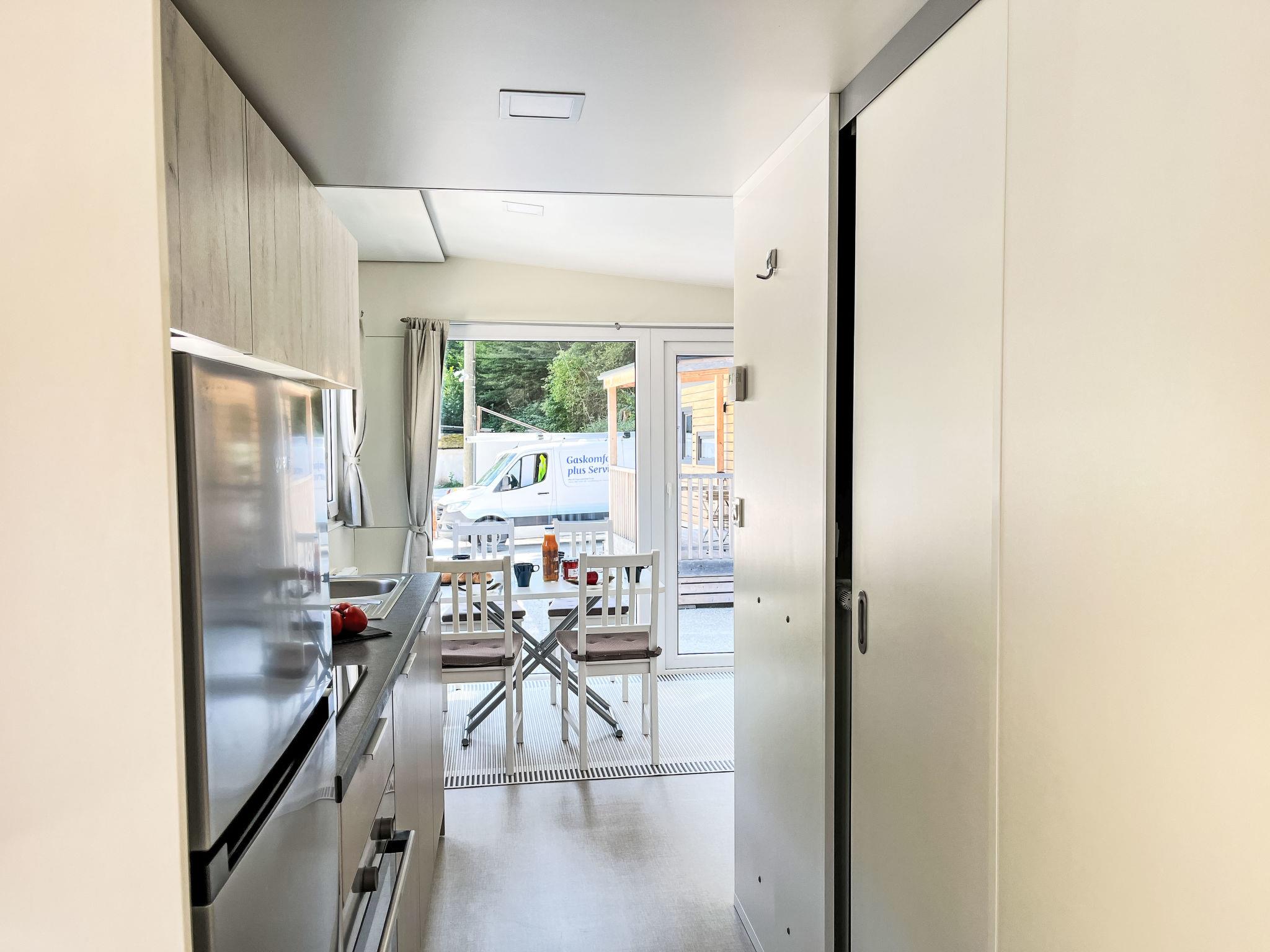 "Tiny Haus Vierseenblick Nummer 3", 3-room mobile home 40 m2, on the ground floor. Beautiful and cosy furnishings: living/dining room with dining nook. 1 room with 2 beds (80 cm, length 190 cm). 1 room with 1 double bed (160 cm, length 200 cm). Small, open kitchen (oven, Gas stove, 4 gas rings, toaster, kettle, microwave, freezer, electric coffee machine). Shower/WC. Electric heating. Terrace partly roofed. Terrace furniture. Parking (1 car) at the house. Please note: non-smoking house. Maximum 1 pet/ dog allowed. Smoke alarm.