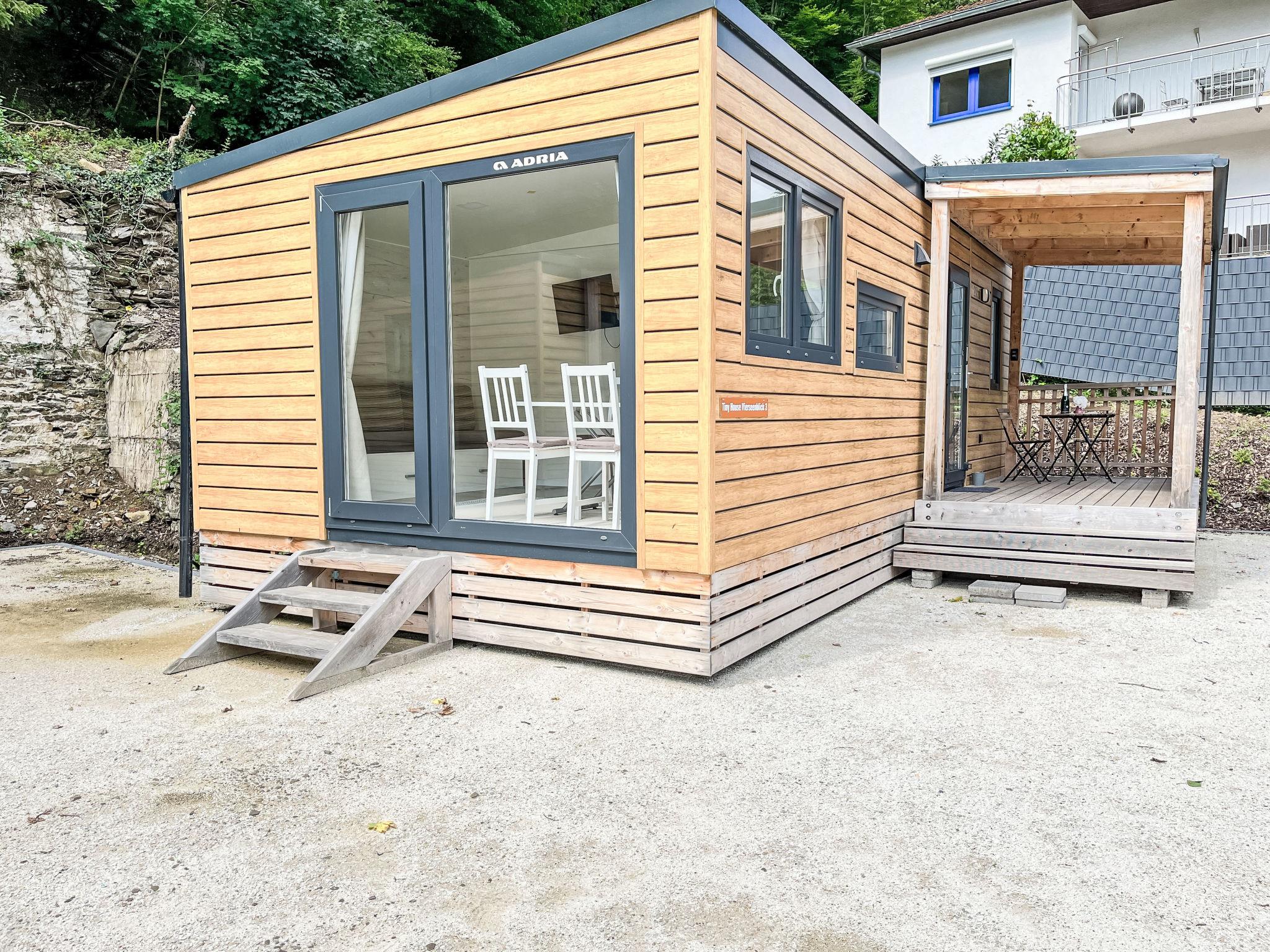 Small, beautiful resort "Tinyhäuser Vierseenblick". 4 houses in the resort. 2 km from the centre of Boppard am Rhein, in a quiet position, 200 m from the edge of the forest. Parking at the house. Shop 2 km, supermarket 2 km, restaurant 950 m, bakery 1.9 km, café 1.8 km, 20 minute walk to the centre, bus stop "Bahnhof Boppard" 1.8 km, railway station "Bahnhof Boppard" 1.8 km, ferry "Boppard-Filsen" 2.2 km. Golf course (18 hole) 12 km, walking paths from the house 200 m, cycle lane 1 km, chair lift 850 m, children's playground 150 m. Nearby attractions: Mittelrhein Klettersteig 1 km, Feindliche Brüder - Höhenburg Kamp-Bornh 10 km, Marksburg - Höhenburg Braubach 35 km, Loreley 20 km, Vierseenblick mit Sessellift 1 km, Bopparder Hamm - Weingebiet 2 km. Well-known lakes can easily be reached: Mittelrheinufer 2 km. Hiking paths: Wanderweg zum Vierseenblick 260 m, Traumschleife Elfenlay 1.5 km, Rheinsteig 3.5 km. Please note: car recommended. The complex has night security. The tiny houses are located at the "Vierseenblick" hiking parking lot, just steps from hiking trails around the Bopparder Hamm. Please note: TV and Wi-Fi are not available.