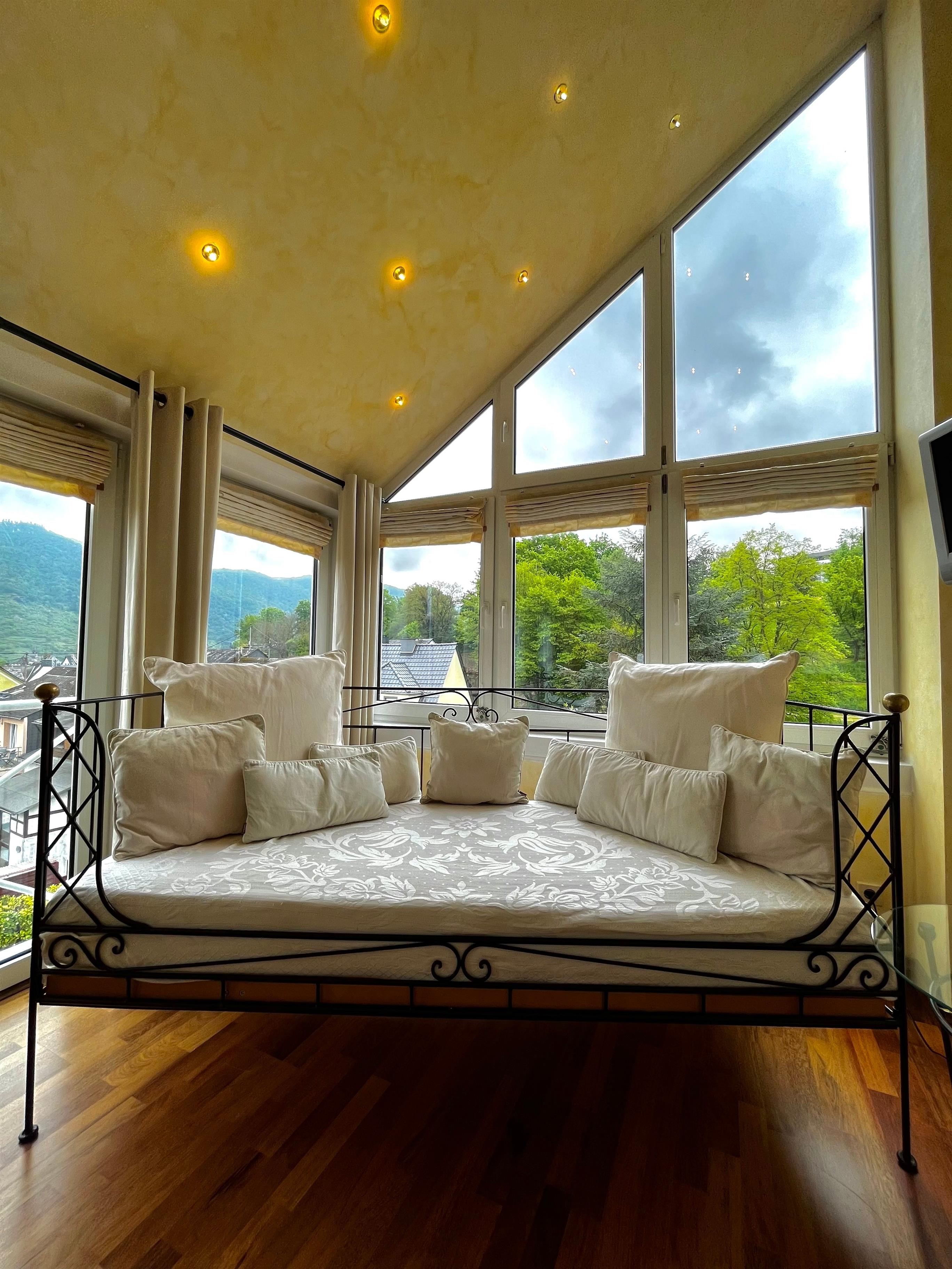 Dank der gut ausgebauten Rad- und Wanderwege kommen vor allem Naturliebhaber in der Region auf ihre Kosten. Das Welterbe Oberes Mittelrheintal lässt sich auch bequem mit dem Schiff entlang des Rheins erkunden. Sie erhalten eine Sonderkarte, die den freien Eintritt in das Bopparder Museum und die kostenfreie Nutzung der Mittelrheinbahn beinhaltet. Aber auch für aktive Naturerlebnisse eignet sich dieses Tal hervorragend. Den verschlungenen Pfaden und abwechslungsreichen Routen zwischen Weinbergen, Wäldern und Wiesen folgen und die fantastische Aussicht genießen: Wandern für Rheinromantiker! Die PARK VILLA ist der ideale Ausgangspunkt für den Aufstieg auf den Rheinburgenwanderweg oder den Rheinsteig. Der bekannte Wanderweg zum Fünfseenblick beginnt direkt vor dem Haus.