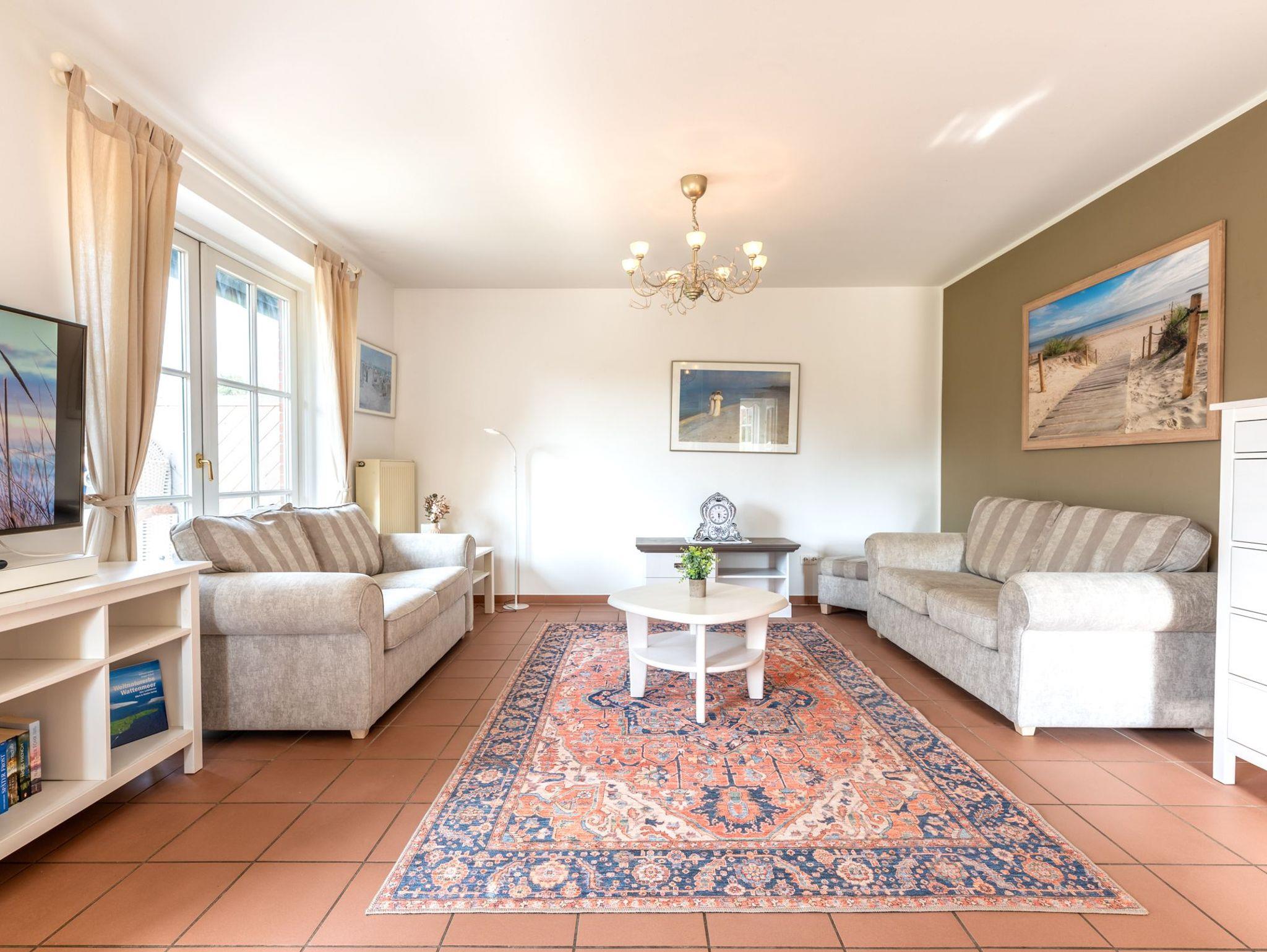 Diese gemütliche und helle 48m² große Erdgeschosswohnung mit eigener Terrasse und Garten befindet sich in Borgsum und bietet Platz für 2 Personen. Die Wohnung erreichen Sie über den linken Hauseingang.