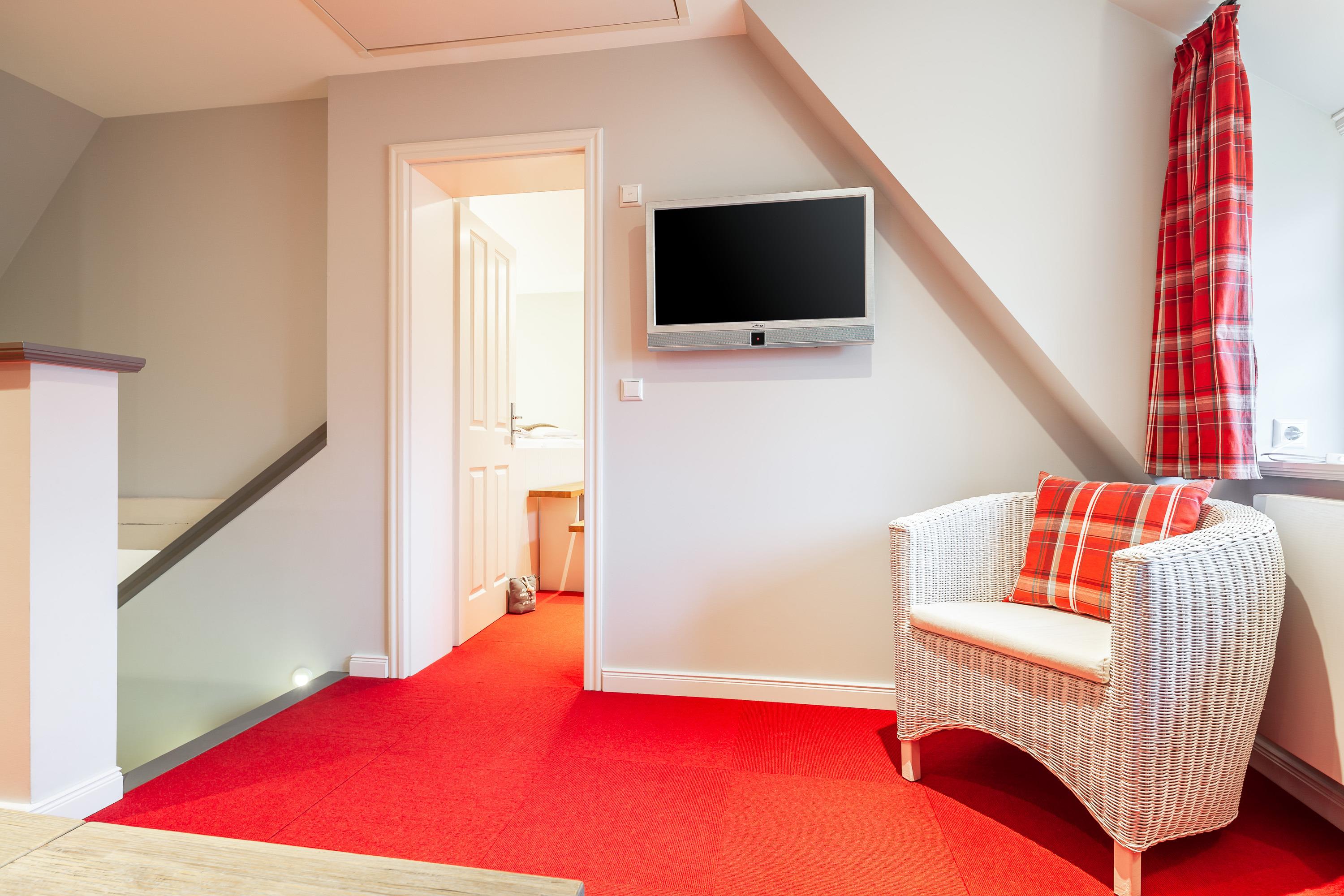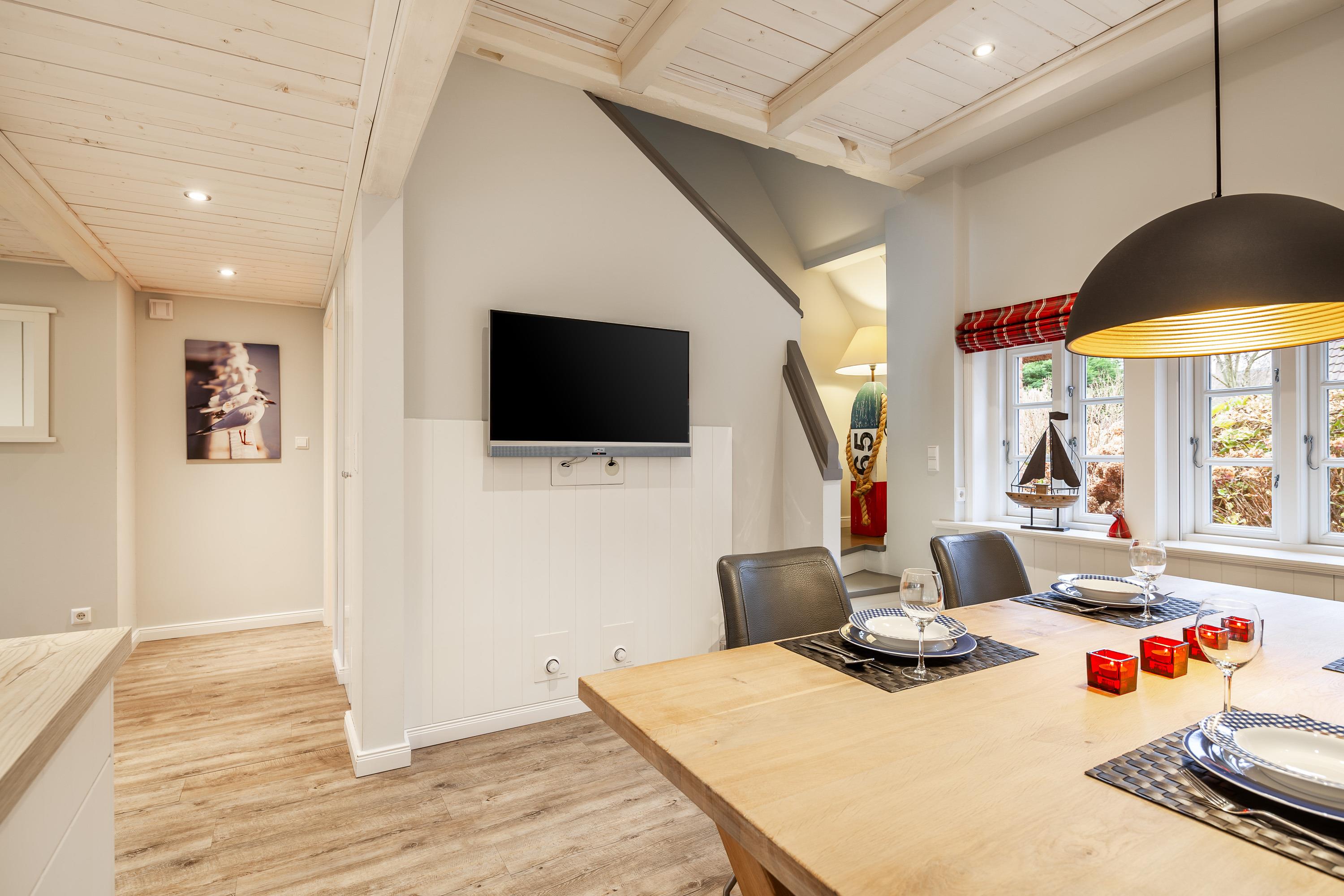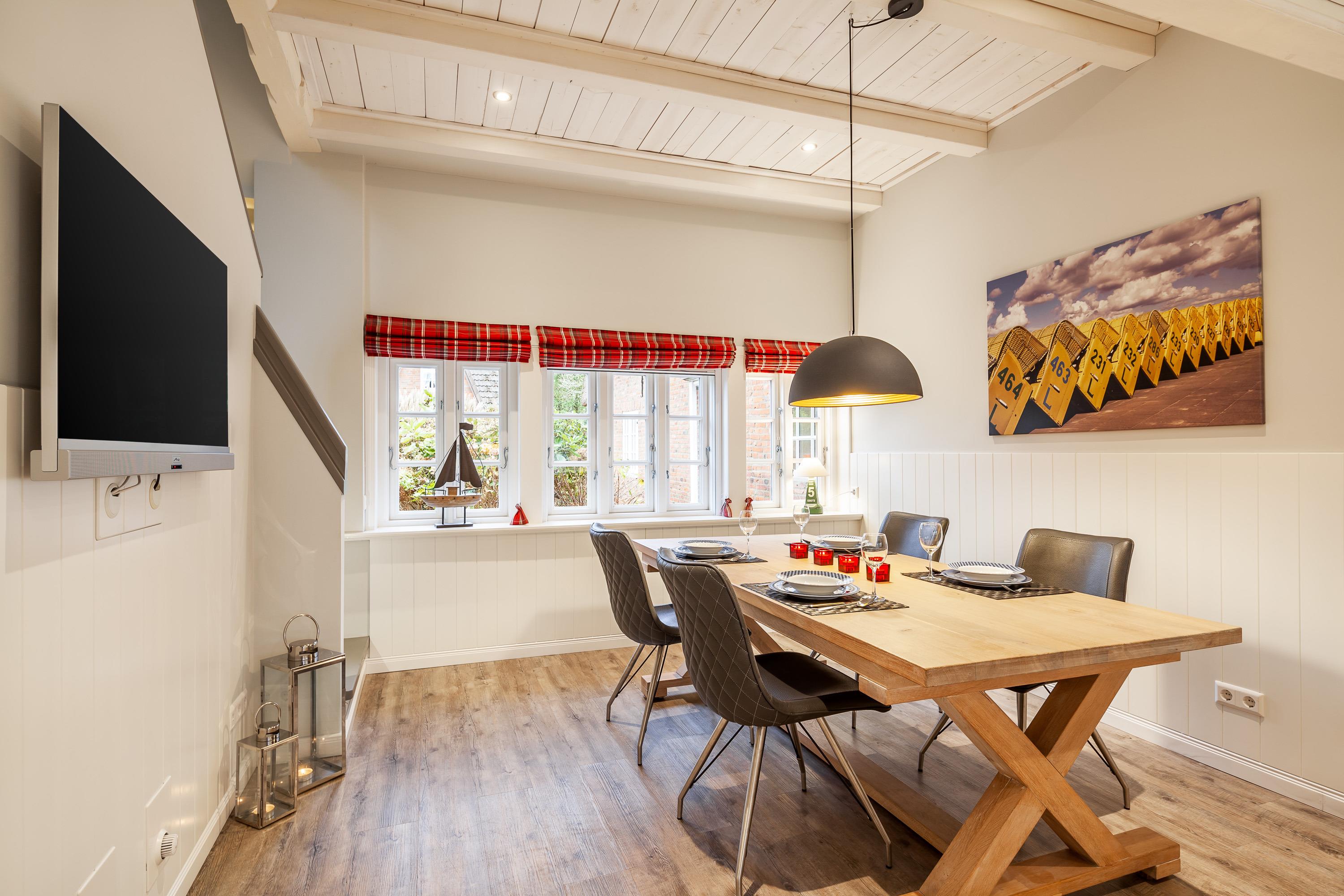 Holzdecken, friesische Holzsprossenfenster und Einbauschränke vom Tischler runden das Bild dieses schicken Hausteils ab.[nbsp]