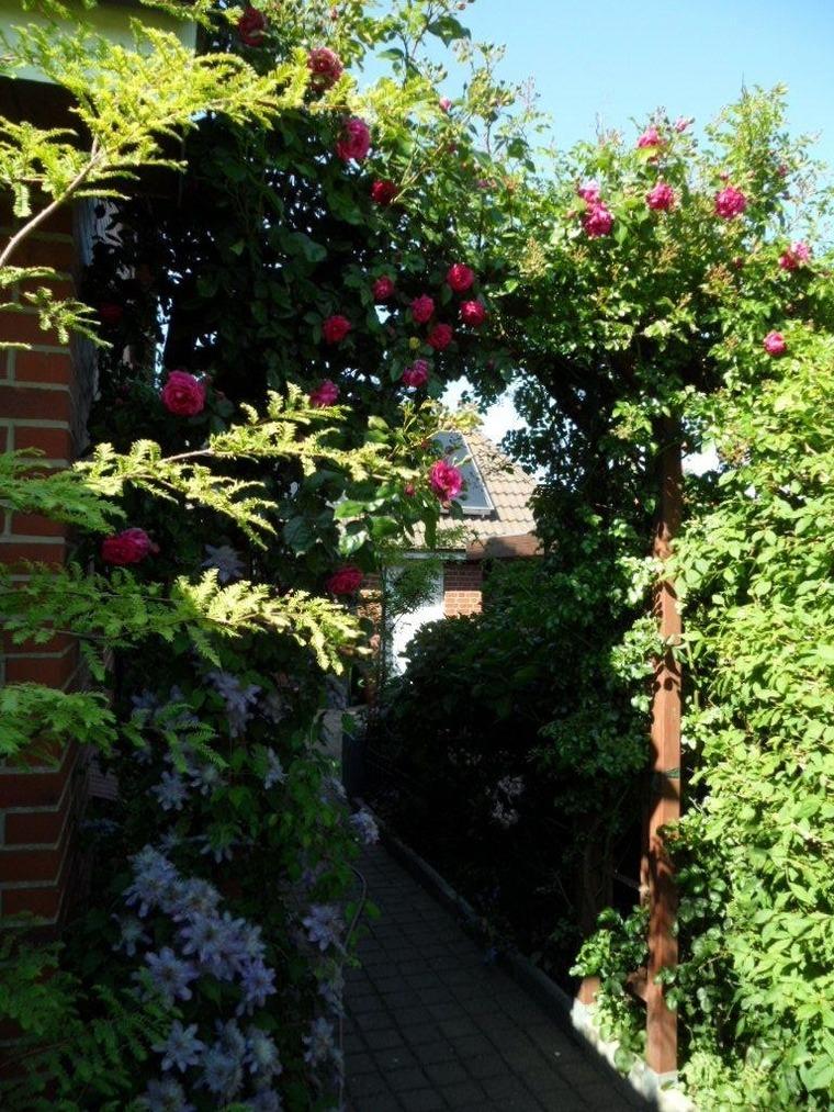 Beim Gartenhaus ist noch eine Sitz Möglichkeit, Auflagen sind im Gartenhaus.