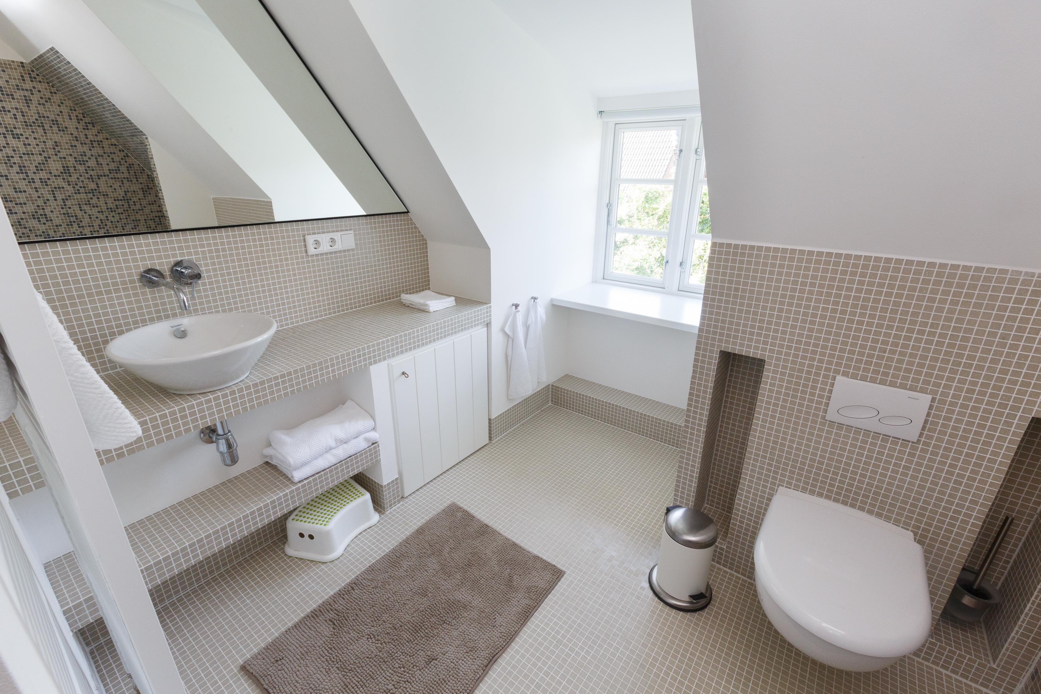 Es handelt sich um eine ca. 95 qm große Ferienwohnung über zwei Etagen mit zwei Schlafzimmern und einer Schlafkajüte. Ein Schlafzimmer mit Doppelbett findet man im Erdgeschoss. Entlang dem Flur mit Garderobe und Gäste-WC gelangt man in die komfortabel ausgestattete, offene Küche mit großem Esstisch und das anschließende, helle und moderne Wohnzimmer.Über eine breite Holztreppe erreicht man das Obergeschoss. Dort befindet sich ein großes Doppelbett-Schlafzimmer, ein großzügiges Duschbad und eine abtrennbare Schlafkajüte von 1,40 Meter Breite, die ideal für Kinder ist.