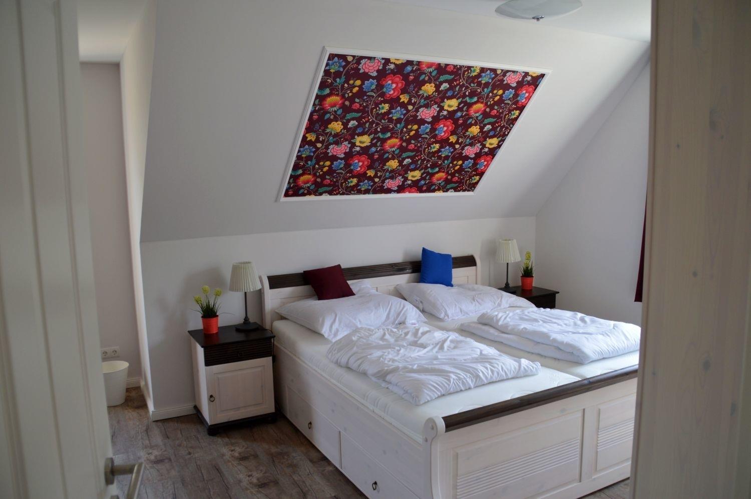 Die drei Schlafzimmer - 2 x mit Doppelbett, 1x mit zwei Einzelbetten stehen Ihnen im Obergeschoss zur Verfügung, ebenso das Wannenbad / WC und die hauseigene Sauna. Im Dachgeschoss befindet sich ein weiterer Aufenthaltsraum mit Sitzkissen, sollte das Wetter mal nicht so passend sein.