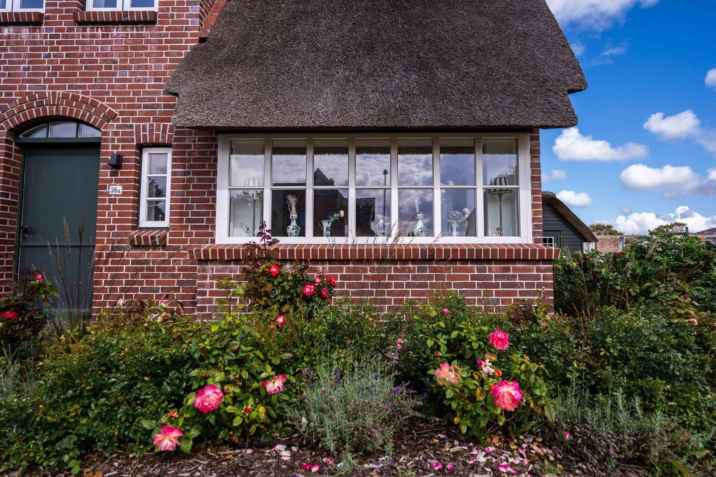 Der vordere Hausteil "Rosa Rugosa", benannt nach den inseltypischen Kartoffelrosen im Garten, erwartet Sie als Ort der Entschleunigung. Die Atmosphäre eines großzügigen Hauses mit viel Kunst, individuellen Wohnelementen und neuester moderner Technik wird Sie bezaubern. Es wurde mit nachhaltigen Materialien gearbeitet. Geheizt wird mit einer Luftwärmepumpe. Umgeben von einem ansprechend gestalteten Garten auf großem Grundstück mit inseltypischem Friesenwall, bietet Rosa Rugosa beste Voraussetzungen für Entspannung, Freude und Erholung.