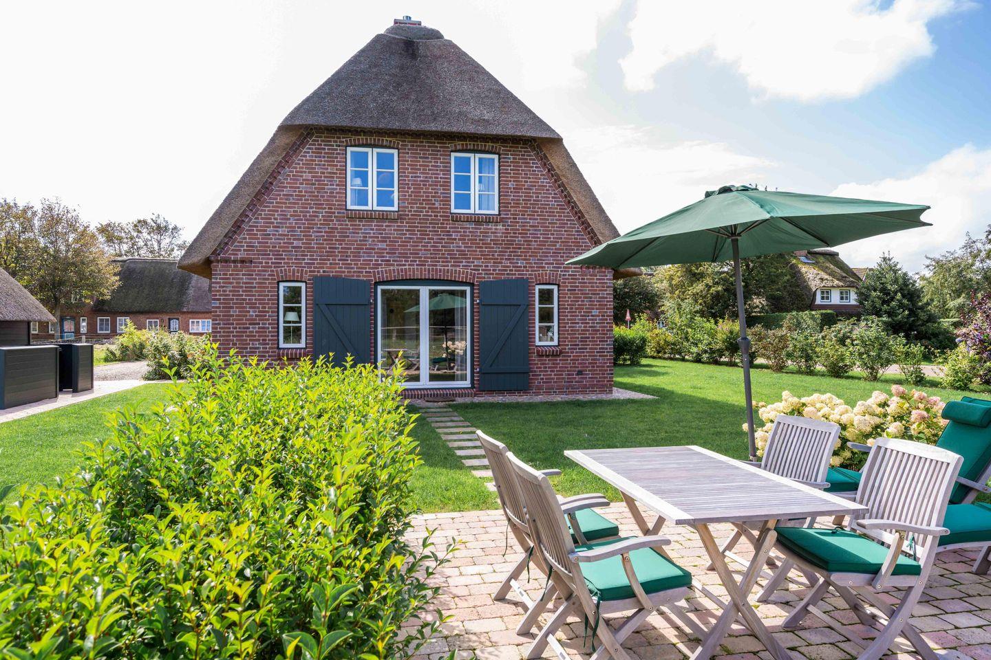 Auf einer ehemaligen Pferdekoppel entstand dieses großzügige Reetdachhaus, umringt von Friesenhäusern am Dorfrand von Borgsum. Das Haus wurde nach altem friesischen Vorbild mit einer Architektin der Insel so geplant, dass Spaziergänger sich oft fragen, ob es wirklich ein Neubau ist. Der Naturstrand des Nachbarortes Witsum ist bequem erreichbar.