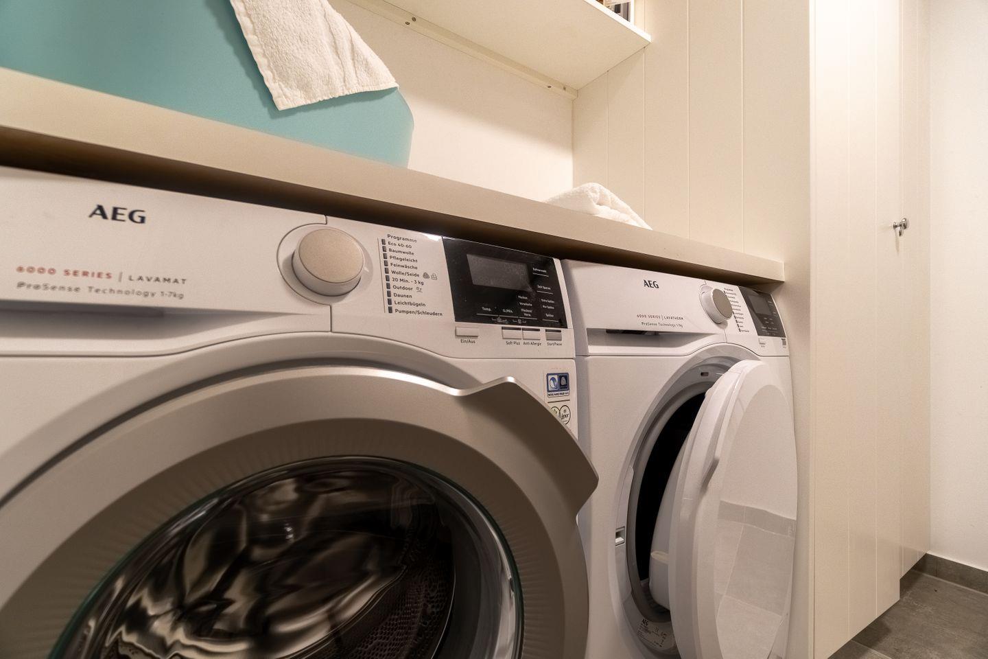 Im Souterrain ist der Hauswirtschaftsraum mit Waschmaschine und Trockner sowie einem separaten Vorratsraum mit vielen Regalen für Ihre Einkäufe untergebracht.