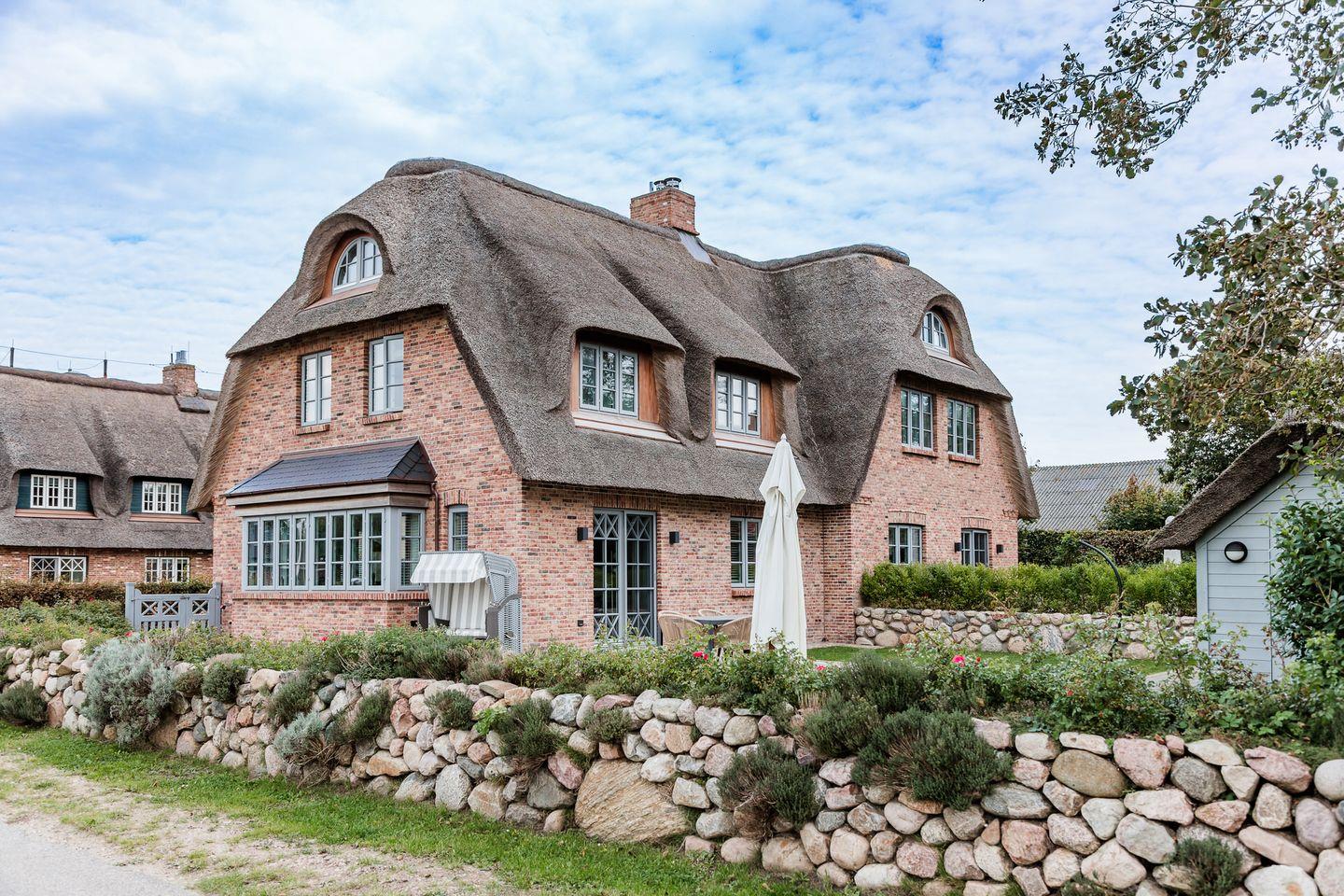 Exklusives 5 Sterne Ferienhaus unter Reet in Strandnähe mit seitlichem Meerblick in absolut ruhiger Lage mit Sauna, Garten und Kamin.