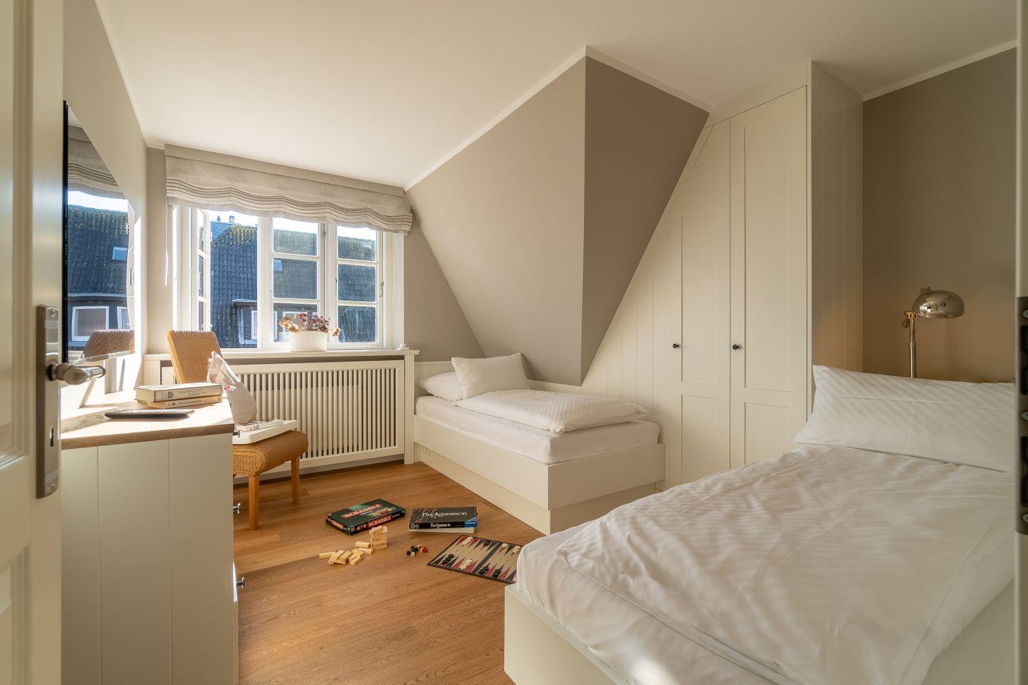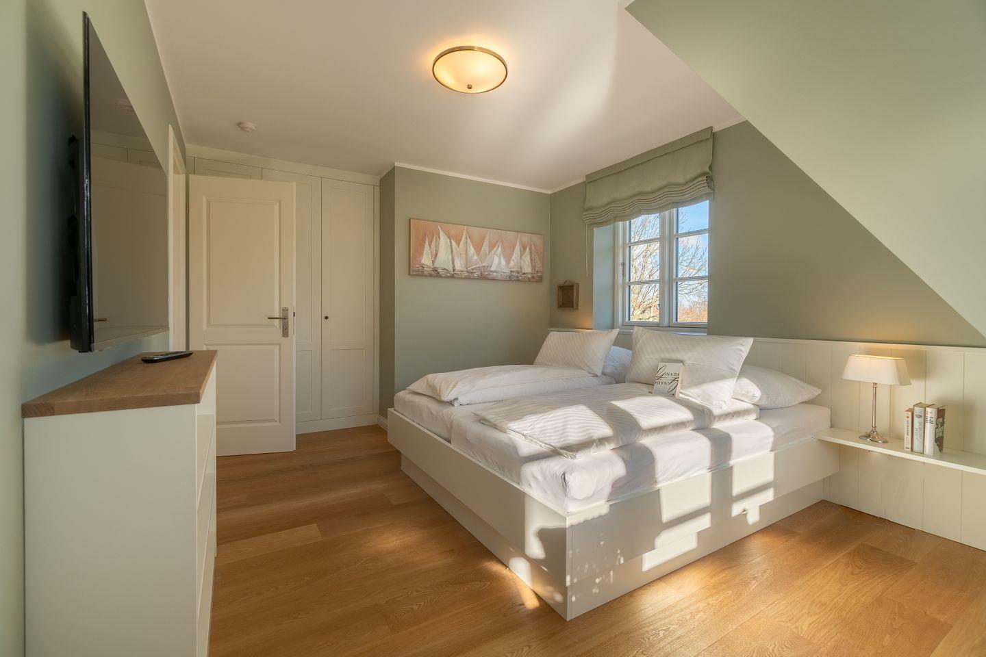 Im Dachgeschoss ist das dritte Schlafzimmer gelegen. Dieses verfügt über ein Doppelbett.