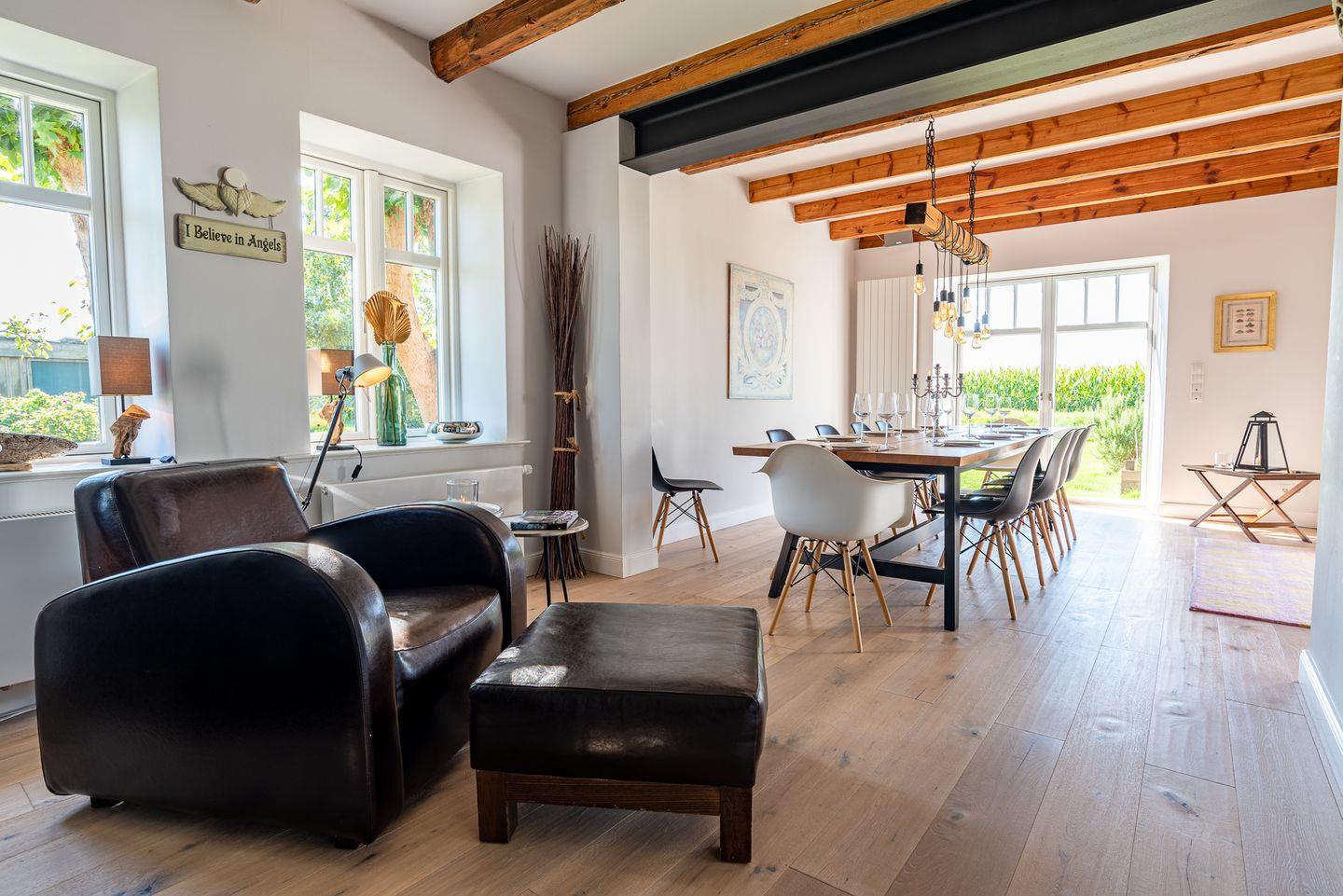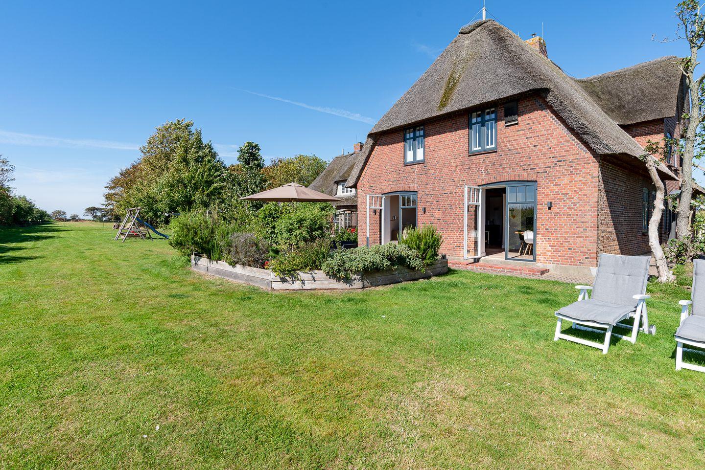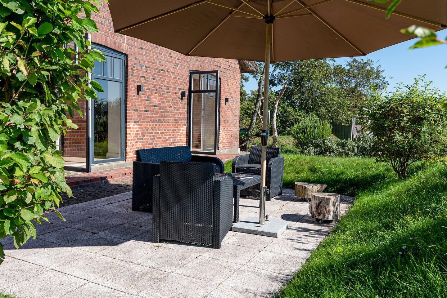 Exklusiver Ferienhausteil unter Reet mit eigener Sauna, Kamin und Gaskamin, sowie zwei eigenen Terrassen im sehr großzügigen, gemeinschaftlich genutzten Garten.
