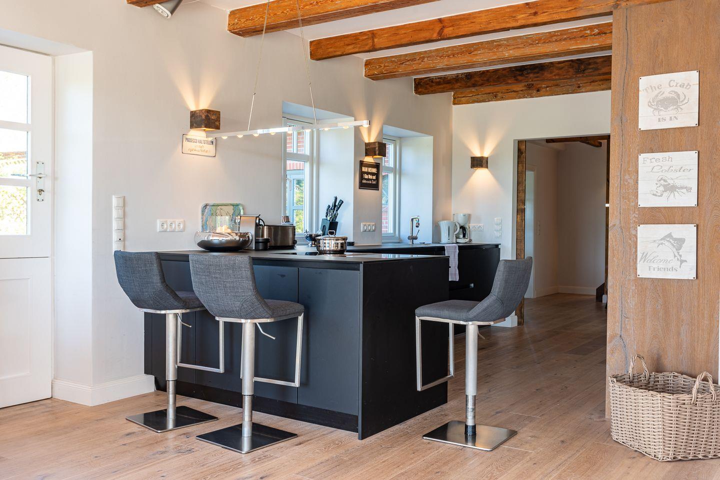Der reetgedeckte Ferienhausteil Seeadler verfügt über 4 Schlafzimmer, 4 Bäder und 1 Gäste-WC und bietet somit komfortabel Platz für bis zu 8 Personen zuzüglich einer Kleinkinderaufbettung. Auch ein Hund ist hier herzlich willkommen.