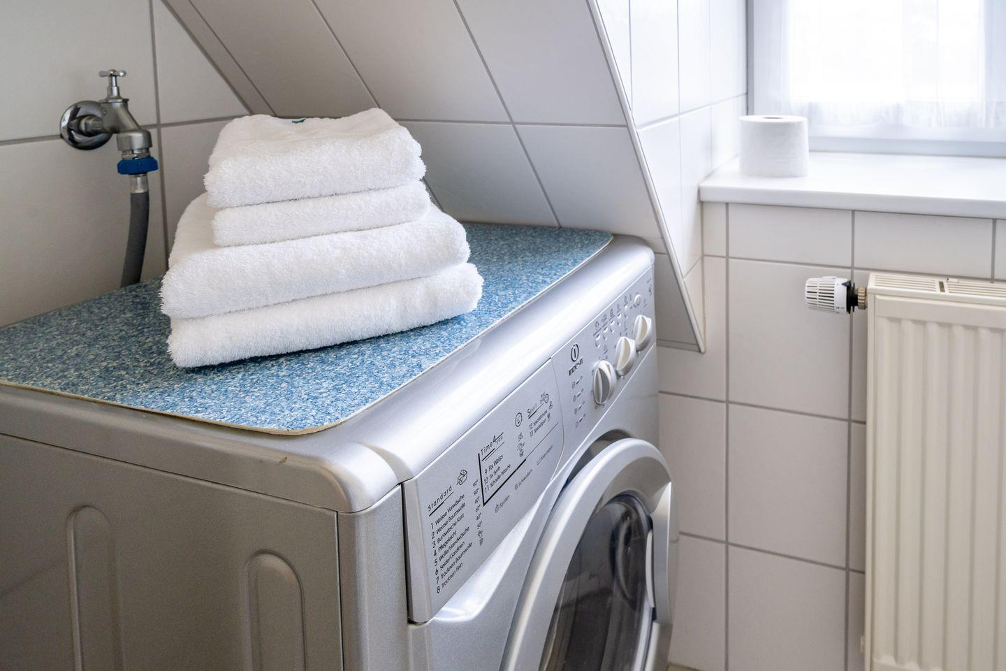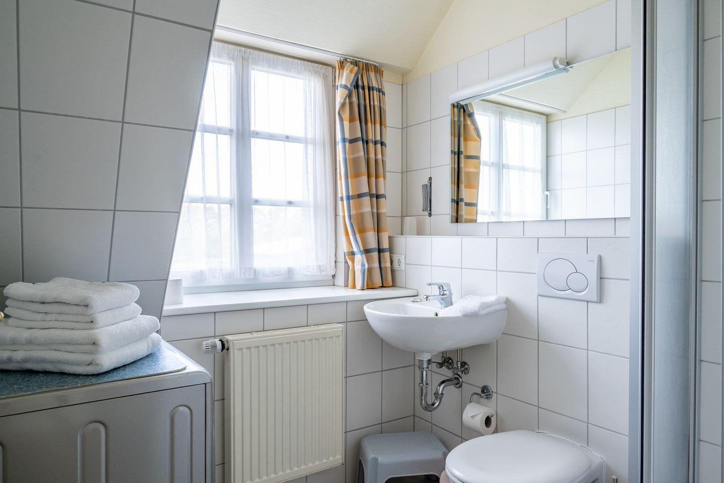 Im Obergeschoss sind die beiden Schlafzimmer - eines mit einem Doppelbett und eines mit zwei Einzelbetten ausgestattet - und das zweite Duschbad gelegen. Im Duschbad steht Ihnen ein Waschtrockner zur Verfügung.