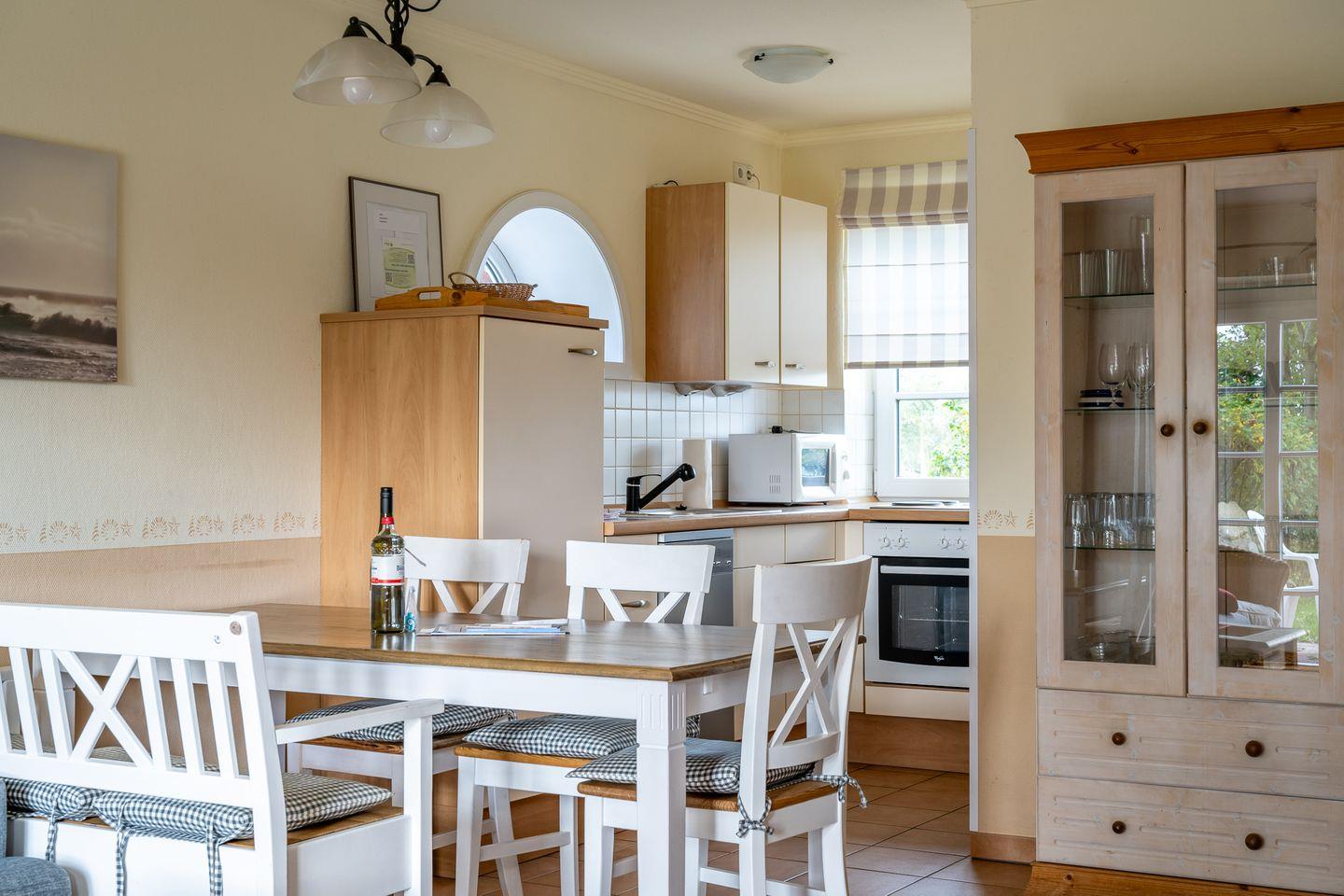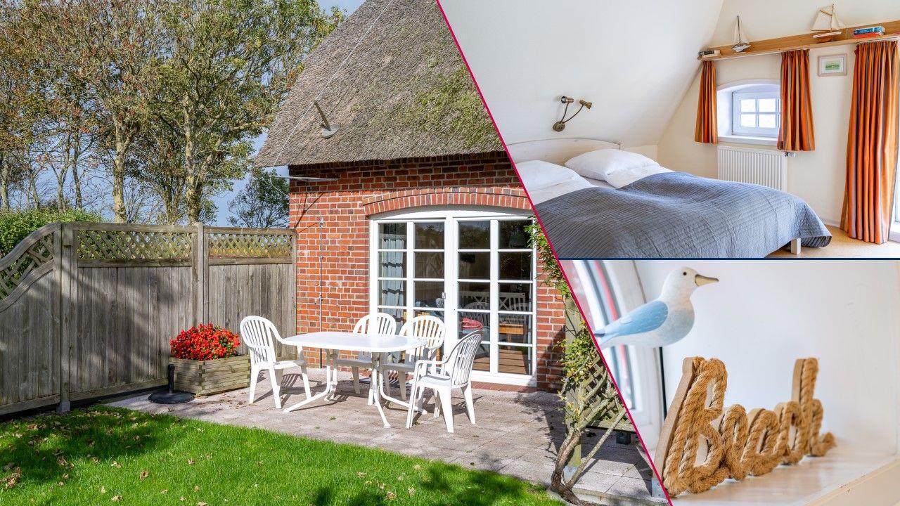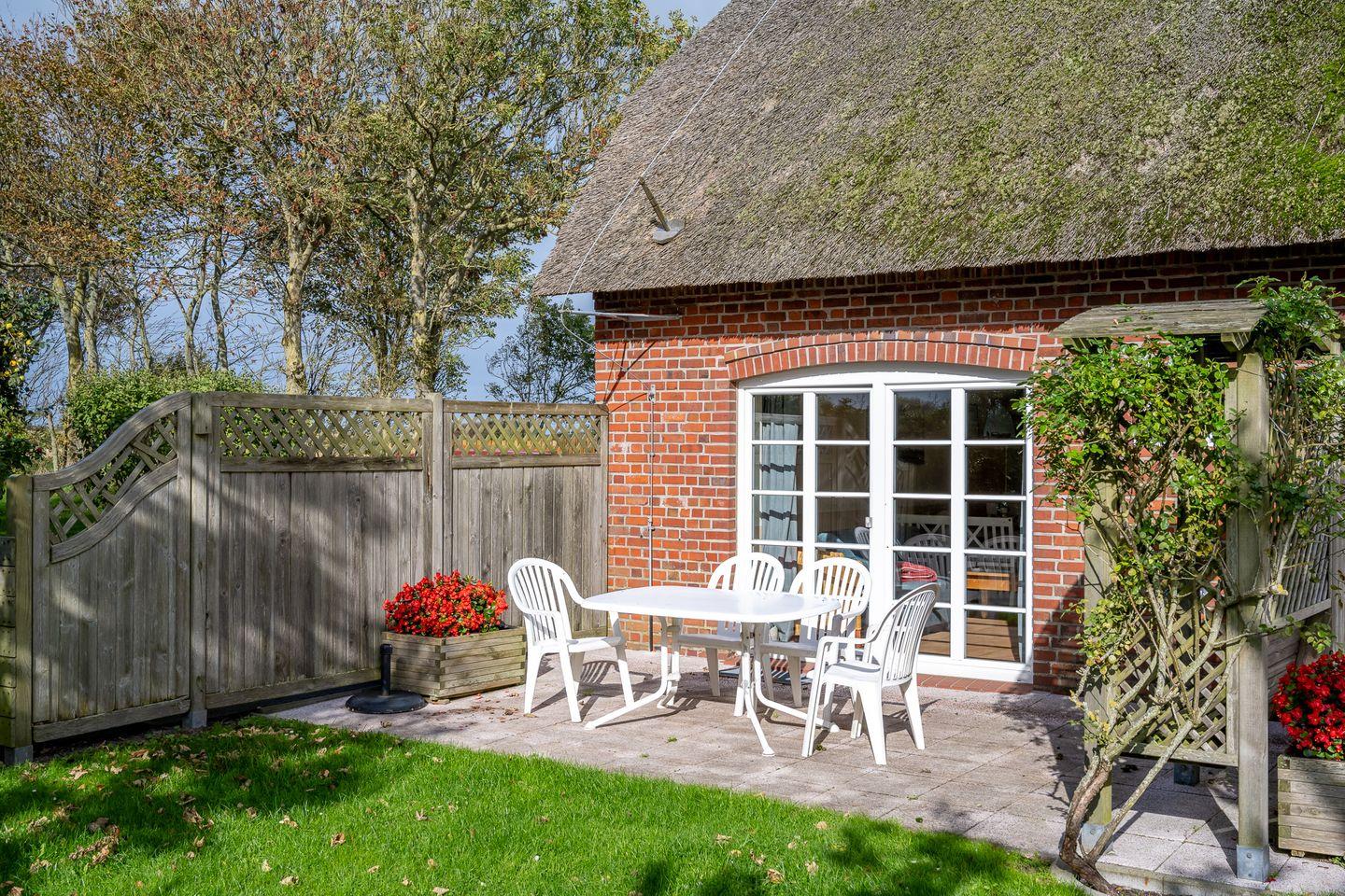 Ferienwohnung unter Reet mit dänischem Ofen und mit eigener Terrasse im sehr großzügigen, gemeinschaftlich genutzten Garten.