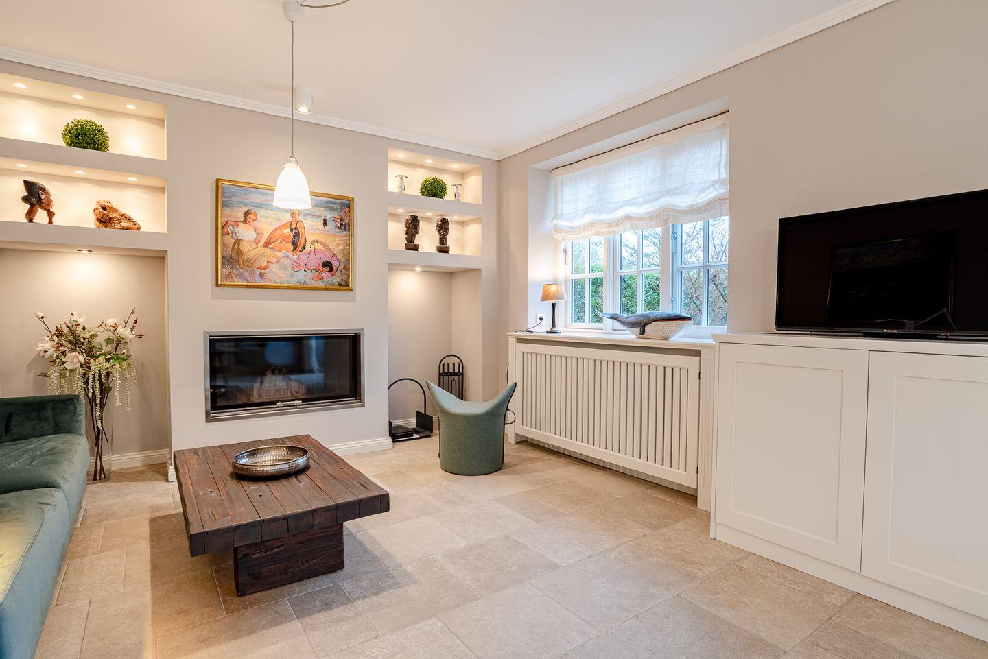 Moderne Doppelhaushälfte unter Reet mit Garten und Terrasse.