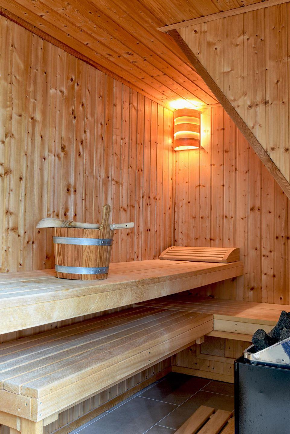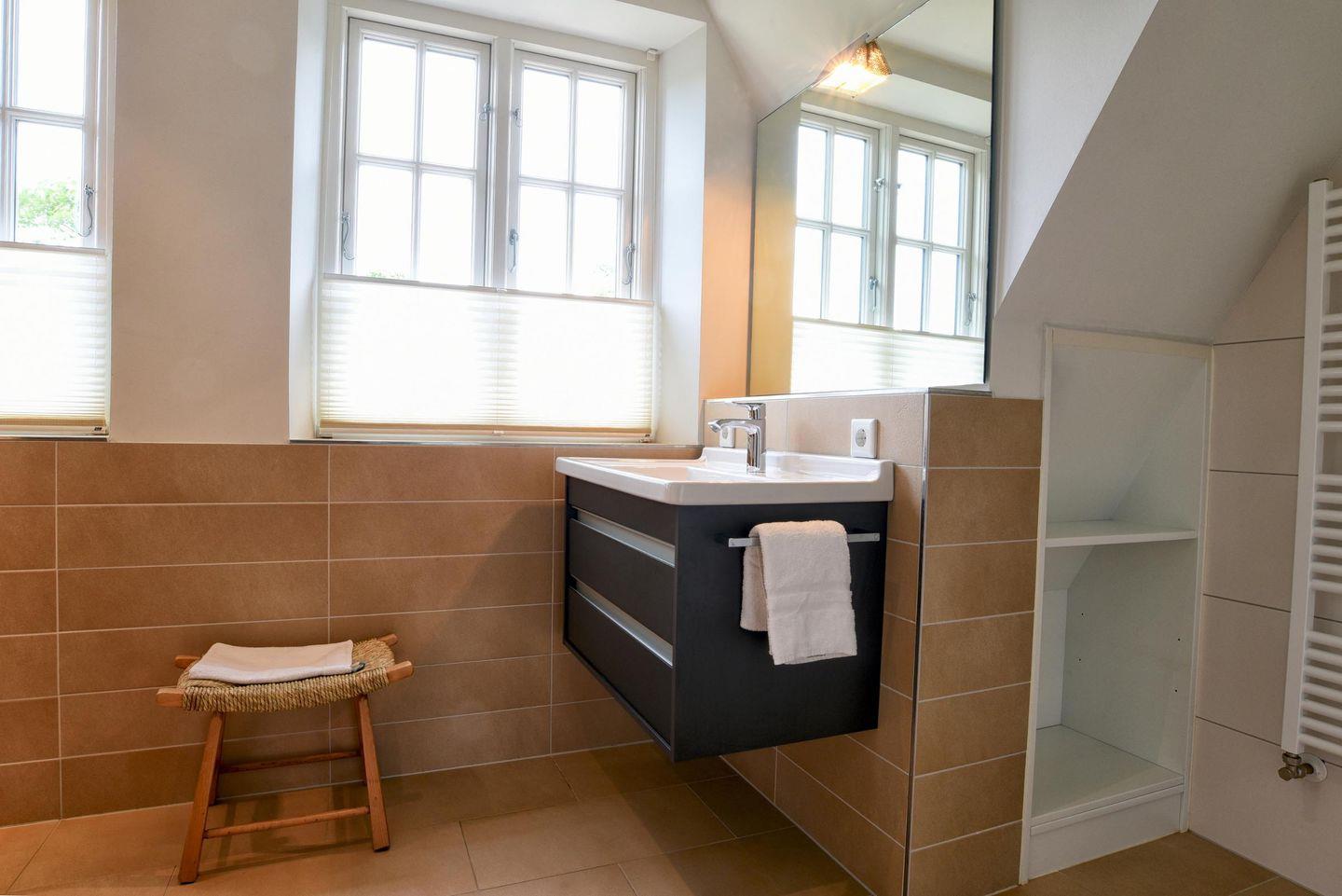 Im Obergeschoss befinden sich die drei Schlafzimmer sowie ein zusätzliches Bad mit bodengleicher Dusche und Sauna.