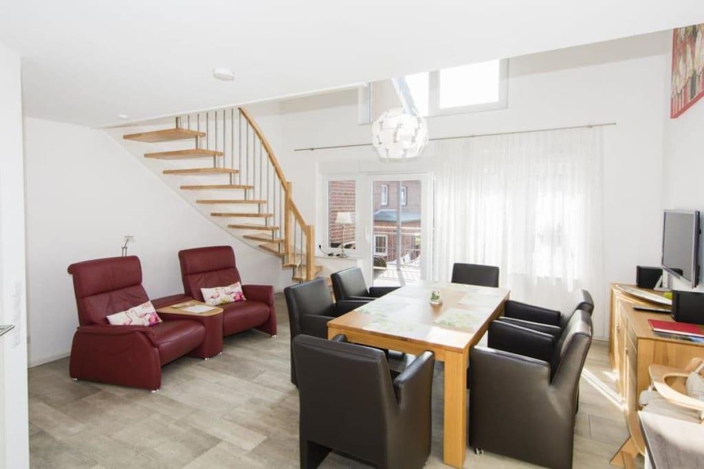 Denne rummelige ferielejlighed er indrettet med stil og rene linjer. Den store stue/spisestue byder på et stort spisebord med komfortabel plads til 6 personer. Det rummelige tekøkken er moderne og veludstyret med keramisk kogeplade, ovn, mikrobølgeovn, køleskab, opvaskemaskine, kaffemaskine og en ekstra Senseo-maskine. De tre soveværelser udstråler klarhed og komfort og er udstyret med dobbeltsenge, tv og elektriske persienner. Her kan du falde i søvn fredeligt. De to brusebadeværelser er i perfekt stand og ideelle til en afslappende start på den næste smukke dag. Et ekstra gæstetoilet og en stor balkon med en fantastisk udsigt fuldender ferielejligheden.